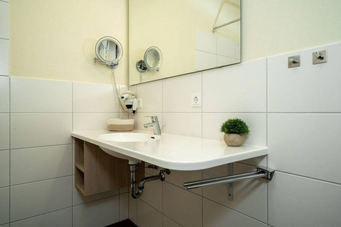 Die Ferienwohnung bietet eine barrierefreie Umgebung und einen eigenen Parkplatz für einen stressfreien Aufenthalt. Gäste können den gemeinsamen Grillbereich mit Holzkohlegrill nutzen oder die entspannende Sauna genießen. Diese Highlights schaffen ein komfortables und geselliges Ambiente, ideal für erholsame Tage und gesellige Abende in einer einladenden Atmosphäre.