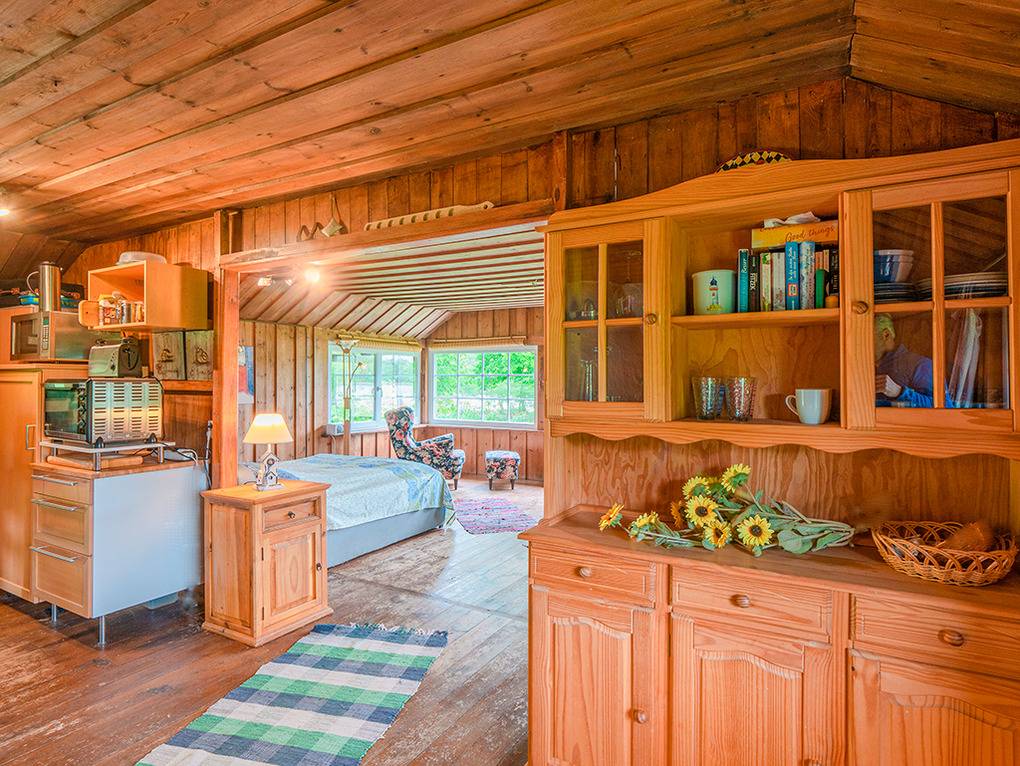 D 52.40 Ferienhaus 2-3 Pers.: 1-Zimmerhaus mit 55 qm Wohnfläche, Parterre. Wohn-/Essraum mit Sitzgarnitur (Ausziehcouch 1 Pers.), Sat-TV, Esstisch, Küchenblock (2-Pl.-E-Herd, Mikrowelle), Doppelbett. Bad/WC.