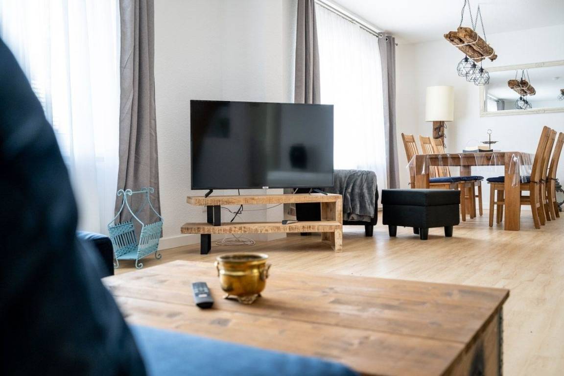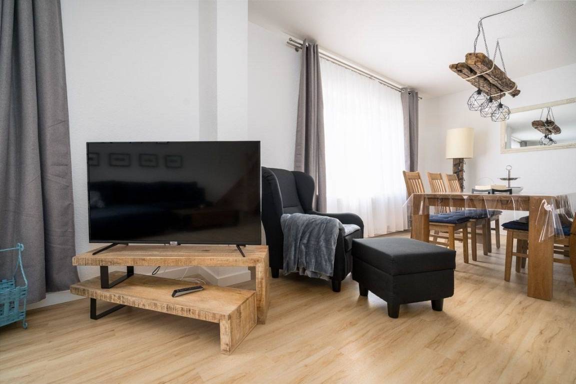 Die Ferienwohnung bietet großzügige und ansprechende Räume, die ideal für einen erholsamen Aufenthalt gestaltet sind. Mit zwei Schlafzimmern, in denen sich ein Doppelbett und zwei Einzelbetten befinden, sowie einem Wohnschlafzimmer mit einer komfortablen Schlafcouch, ist ausreichend Platz für bis zu sechs Personen vorhanden. Die offene Küche ist mit modernsten Geräten ausgestattet, darunter ein Geschirrspüler, Backofen, Elektro-/Gasherd, Kühlschrank und eine Küchenmaschine, und bietet einen einladenden Esstisch für gesellige Mahlzeiten. Die beiden Badezimmer verfügen über eine bodengleiche Dusche und Fenster für frische Luft. Für zusätzlichen Komfort sorgen WLAN, eine HiFi-Anlage, TV und zahlreiche Spielmöglichkeiten für Kinder. Sicherheitsfunktionen wie Rauchmelder und Kindersicherungen sowie ein Parkplatz runden das Angebot ab. Diese allergikerfreundliche Unterkunft ist bestens für Familien und Entspannungssuchende geeignet.