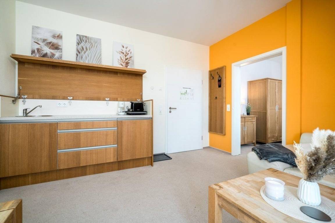 Die Ferienwohnung bietet eine ideale Kombination aus Komfort und Funktionalität. Sie verfügt über ein gemütliches Schlafzimmer mit einem Doppelbett und ein modernes Badezimmer mit bodengleicher Dusche und Fenster. Die barrierefreie und seniorengerechte Ausstattung ermöglicht einen einfachen Zugang für alle Gäste. Die Küchenzeile ist mit einem Elektro-/Gasherd, Kühlschrank, Kaffeemaschine, Toaster und Gefriermöglichkeit ausgestattet, während Geschirr, Besteck und Gewürze (Starterset) bereitstehen. Für Familien stehen ein Kinderhochstuhl und ein Kindertoilettensitz zur Verfügung. Der Wohnbereich ist mit einem Sofa, Esstisch und HiFi-Anlage ausgestattet und bietet Zugang zum WLAN mit 25 MBit/s. Für Entspannung sorgen der gemeinschaftliche Fitnessraum sowie Spiele und Kinderspielzeug. Ein Parkplatz, Fahrstuhl und verschiedene Annehmlichkeiten wie Haartrockner, Bademantel und Erste-Hilfe-Set sichern einen rundum sorglosen Aufenthalt.