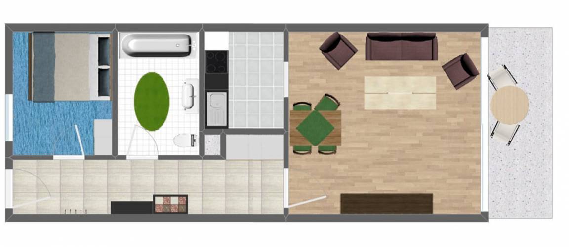 - ein Wohn-/Schlafraum mit Schrankbett (damit Sie tagsüber viel Platz haben) sowie privates WLAN und SAT-TV.