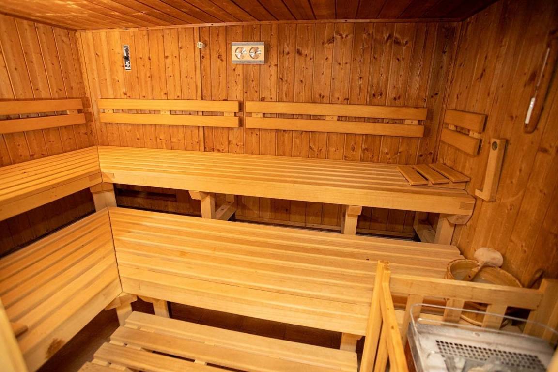 Sauna und Solarium. Die Sauna ist von 16 bis 22 Uhr täglich geöffnet. Eintritt 5,- €/Person.
