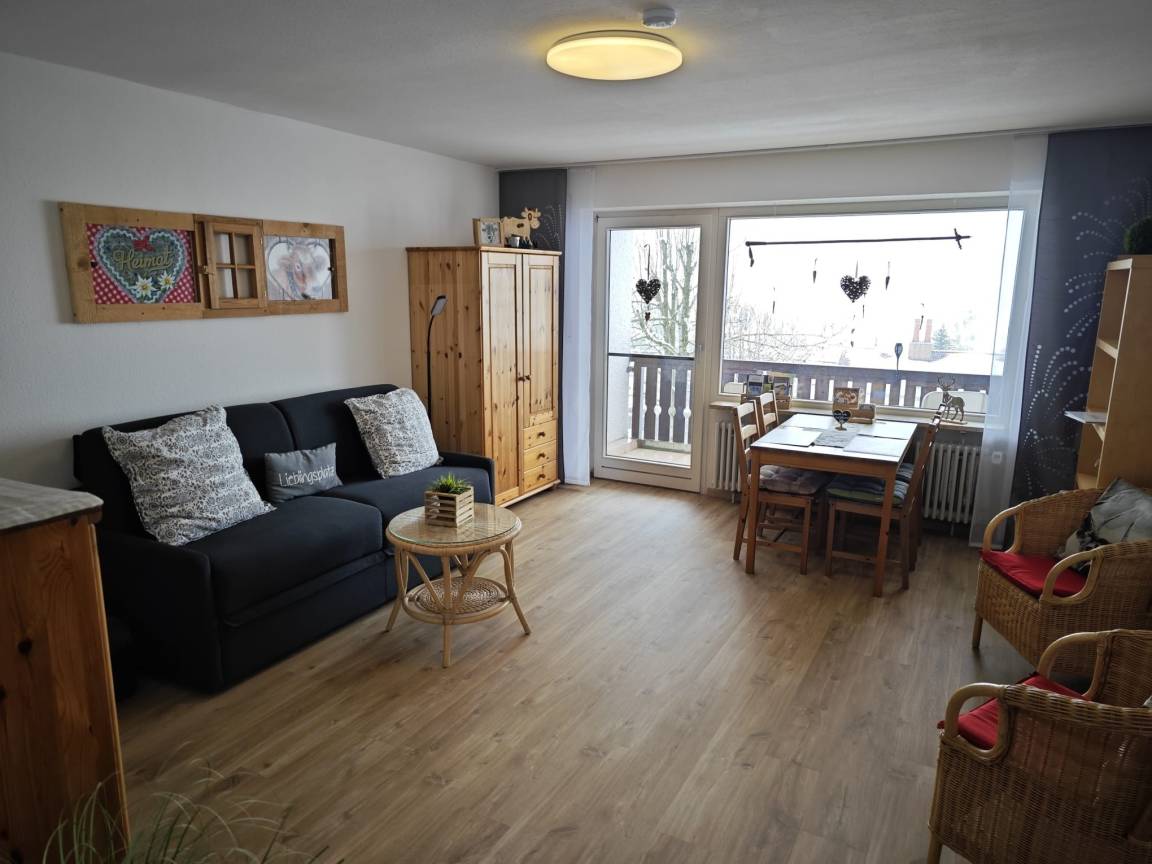 Schönes 2 Zimmer Appartement 45m² im Ferienpark Oberallgäu in Wilhams für 4 Personen im Erdgeschoss mit Balkon. Das Hallenschwimmbad (14x8 m) ist täglich von 09:00-22:00 Uhr geöffnet, die Sauna kann täglich von 16:00-22:00 Uhr (kostenpflichtig) genutzt werden. Spielplätze, Wanderwege, Badeseen in der Nähe. Schöner Ausblick zur Skipiste und Skiloipe.