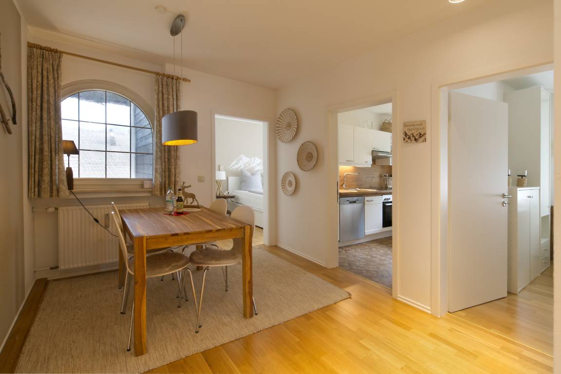 Der Esstisch befindet sich im Eingangsbereich/ Flur.