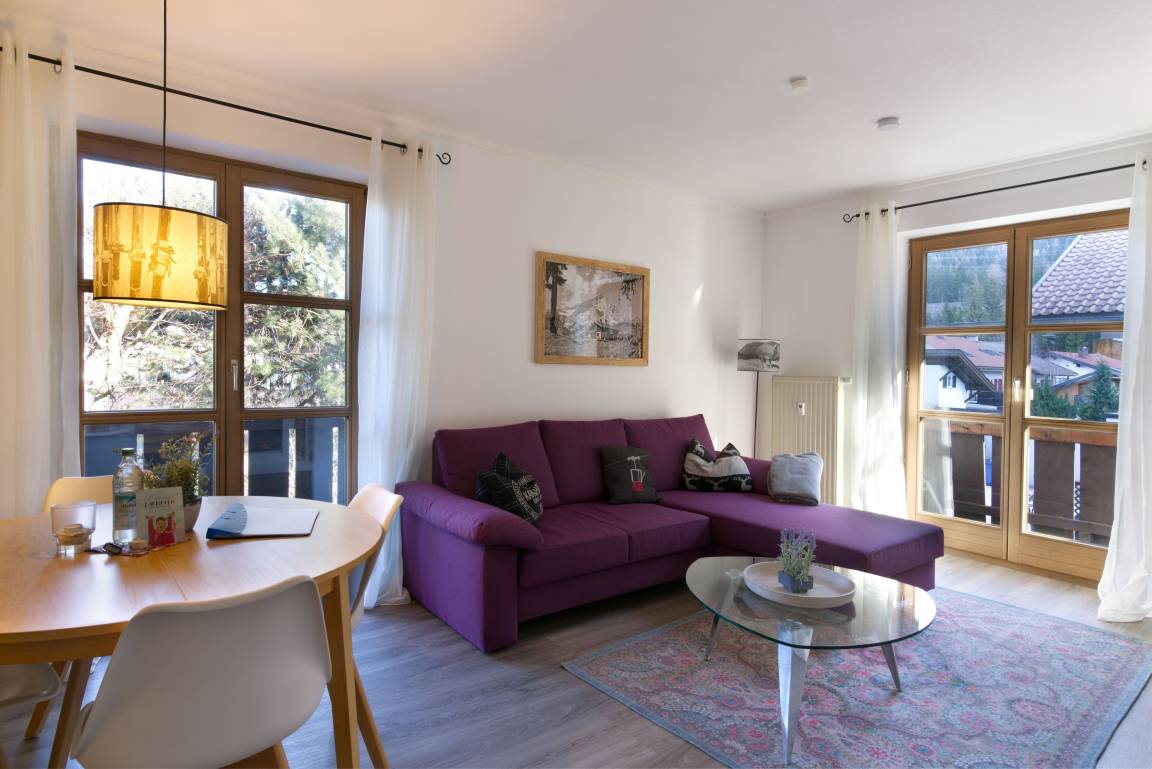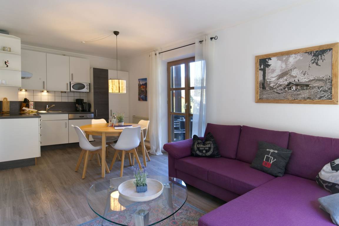 Die helle im alpinen Style ausgestattete 2-Zimmerwohnung "Lavendelstüberl" ***, bietet über zwei Balkone einen herrlichen Ausblick in Richtung Karwendelgebirge.