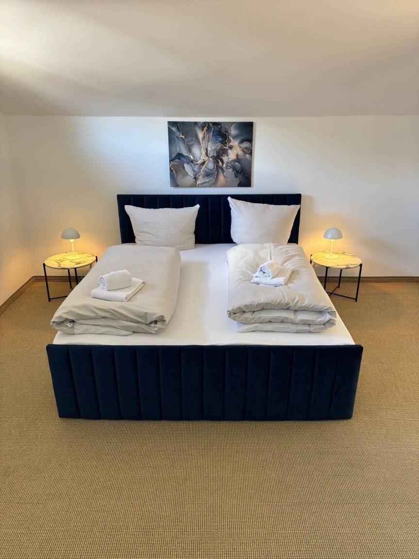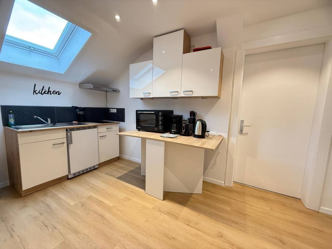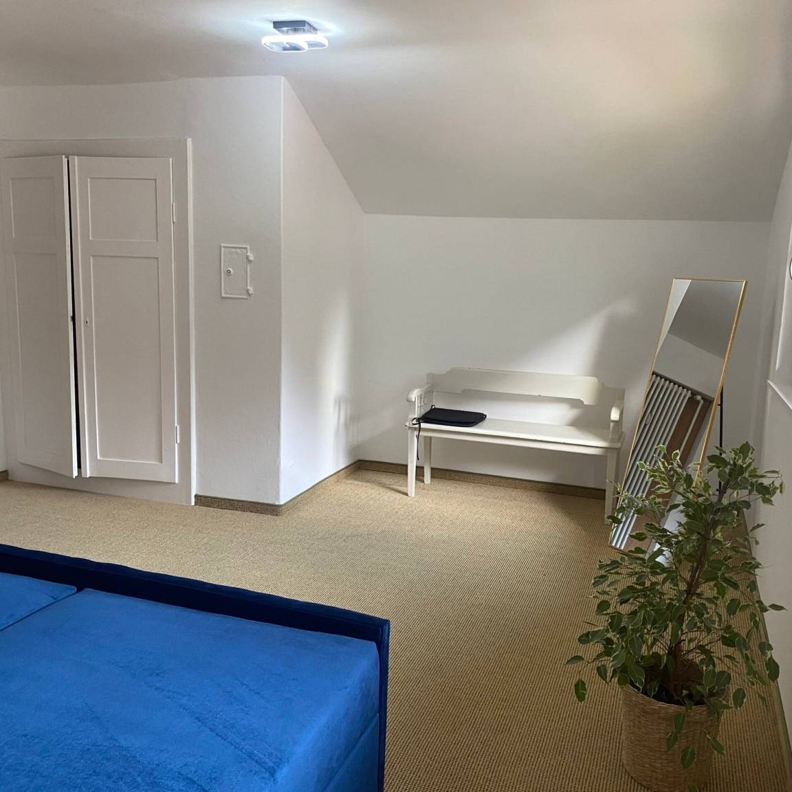 Das Schlafzimmer ist behaglich eingerichtet und schenkt Ihnen erholsame Nächte. Das Badezimmer ist sehr klein, liegt in der Mansarde und ist bewusst kompakt gehalten. Die Dusche ist durch die Dachschräge in der Stehhöhe auf etwa 175 cm begrenzt mit Vorhang. - funktional und zweckmäßig, aber nicht luxuriös.