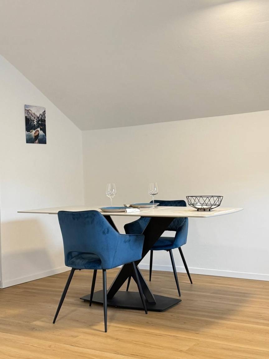 Der offene Wohn- und Essbereich lädt zum Verweilen ein: Hier können Sie gemeinsam essen, entspannen und den Blick ins Alpenpanorama genießen. Die Küche ist zweckmäßig ausgestattet und bietet alles, was Sie brauchen - statt eines klassischen Herds steht Ihnen ein moderner Minibackofen zur Verfügung, mit dem Sie genauso vielseitig kochen und backen können wie mit einem normalen Backofen. Keine Spülmaschine.