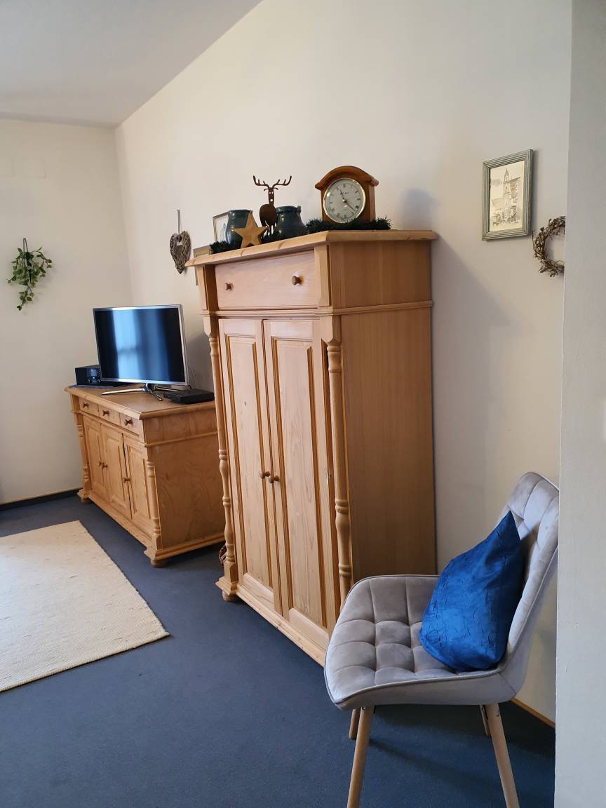 Helle, massiv möblierte 2-Zimmer-Wohnung. Terrasse mit herrlicher Nachmittagssonne.