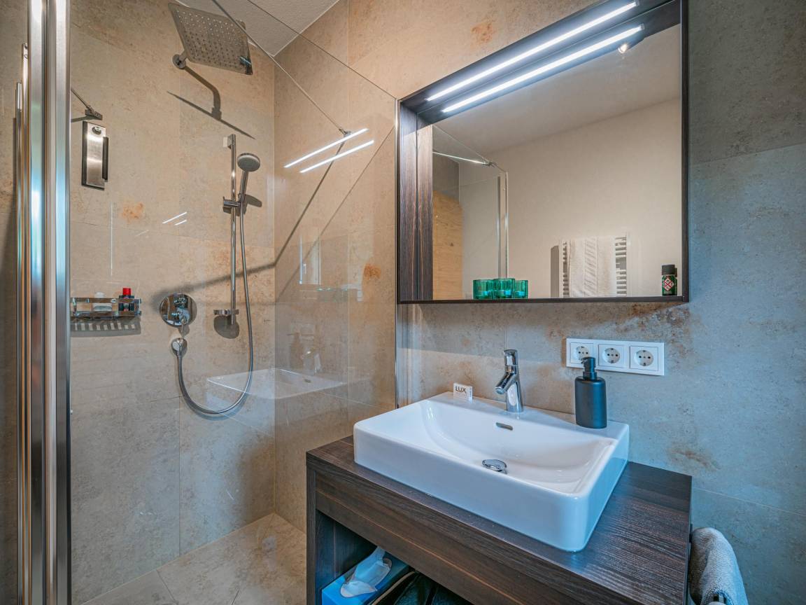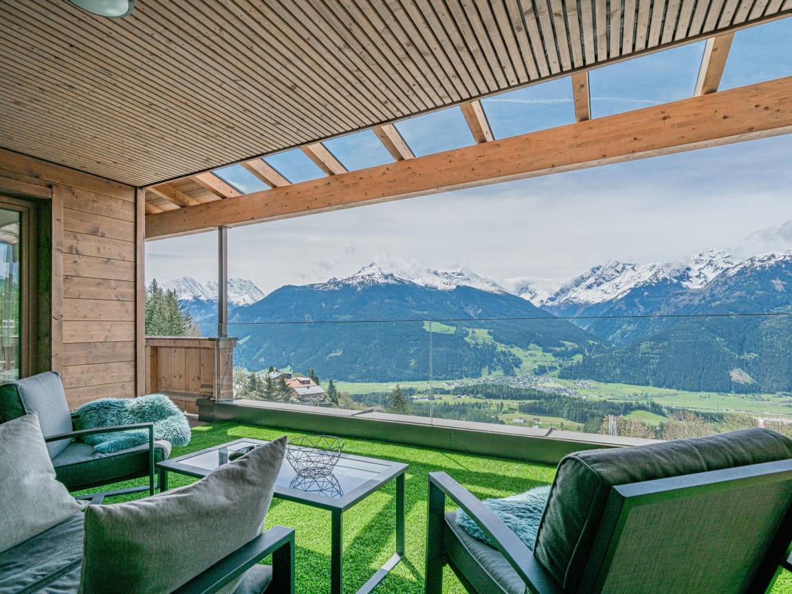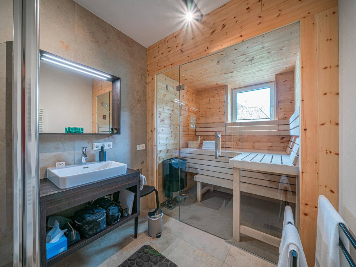 Hausbeschreibung : Die Wohnung verfügt über hochwertige Eichenböden und Fußbodenheizung. Die Schlafzimmer sind mit erstklassigen Boxspringbetten und allergikerfreundlichen Kopfkissen und Bettdecken ausgestattet und sorgen für erholsame Nächte. Das Wohnzimmer mit Panoramafenster bietet einen atemberaubenden Blick auf die majestätische Bergwelt der Hohen Tauern. Luxuriöses Mobiliar sorgt für maximalen Komfort. Außerdem bietet es eine private Sauna für die totale Entspannung nach einem aktiven Tag.