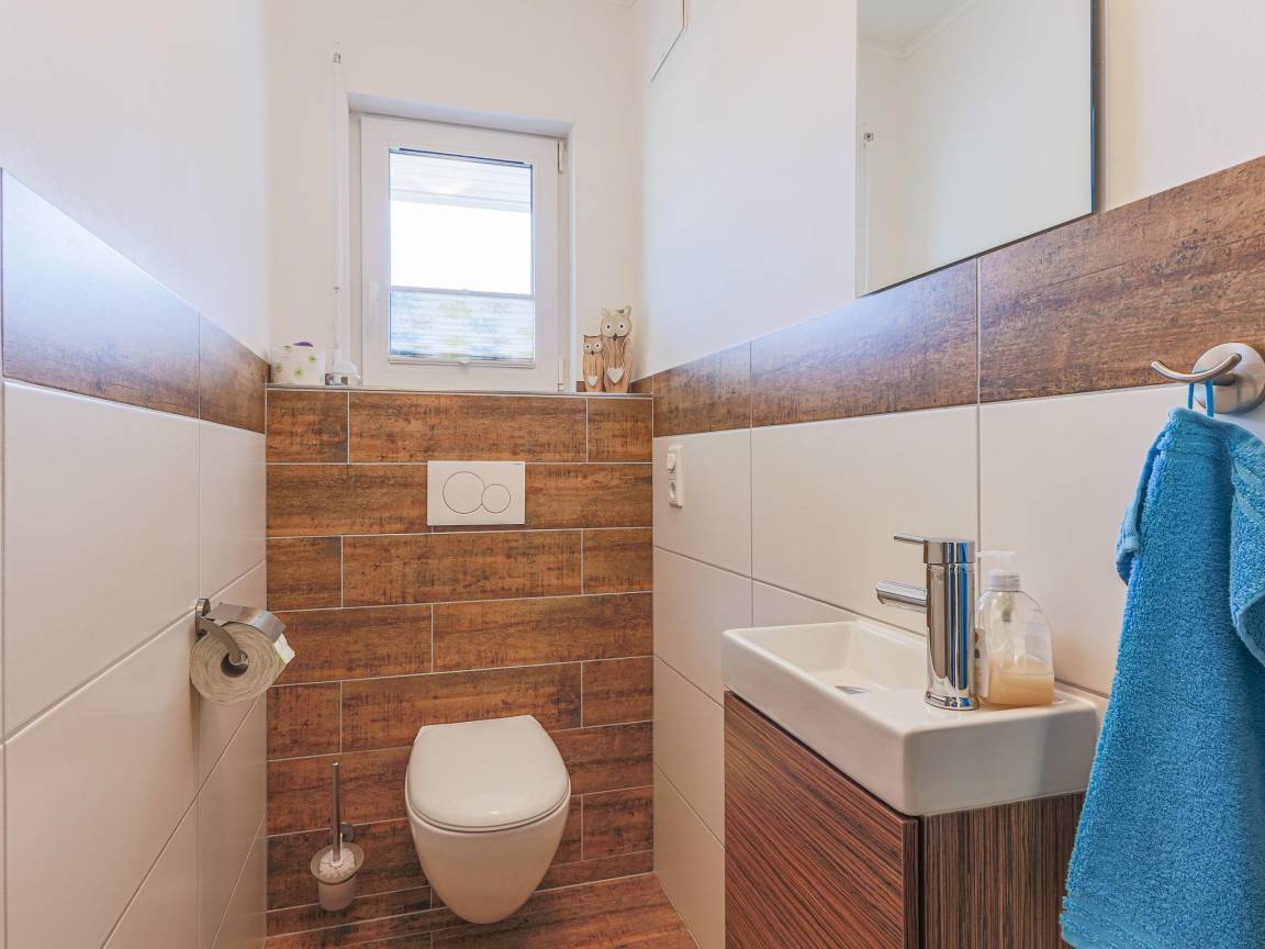 Layout : In der 1. Etage: offene Küche mit Wasserkocher, Kochherd, Kaffeemaschine(Filter), Backofen, Grill, Mikrowelle, Geschirrspüler, Kühl-/Gefrierkombination , Wohn/Esszimmer mit Schlafcouch 1 Pers., TV, Esstisch, Sitzecke , Schlafzimmer mit Doppelbett , Schlafzimmer mit Doppelbett , Badezimmer mit Dusche, Waschbecken , Toilette mit Waschbecken