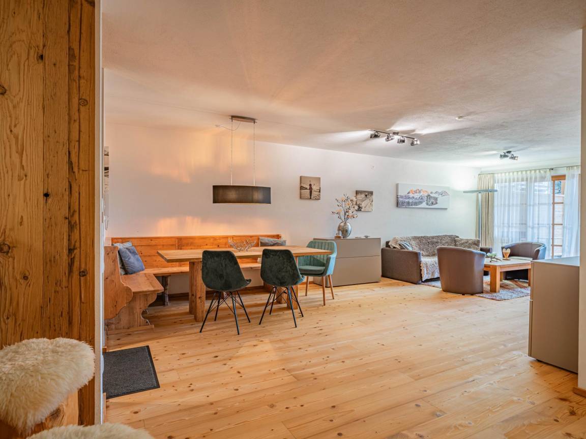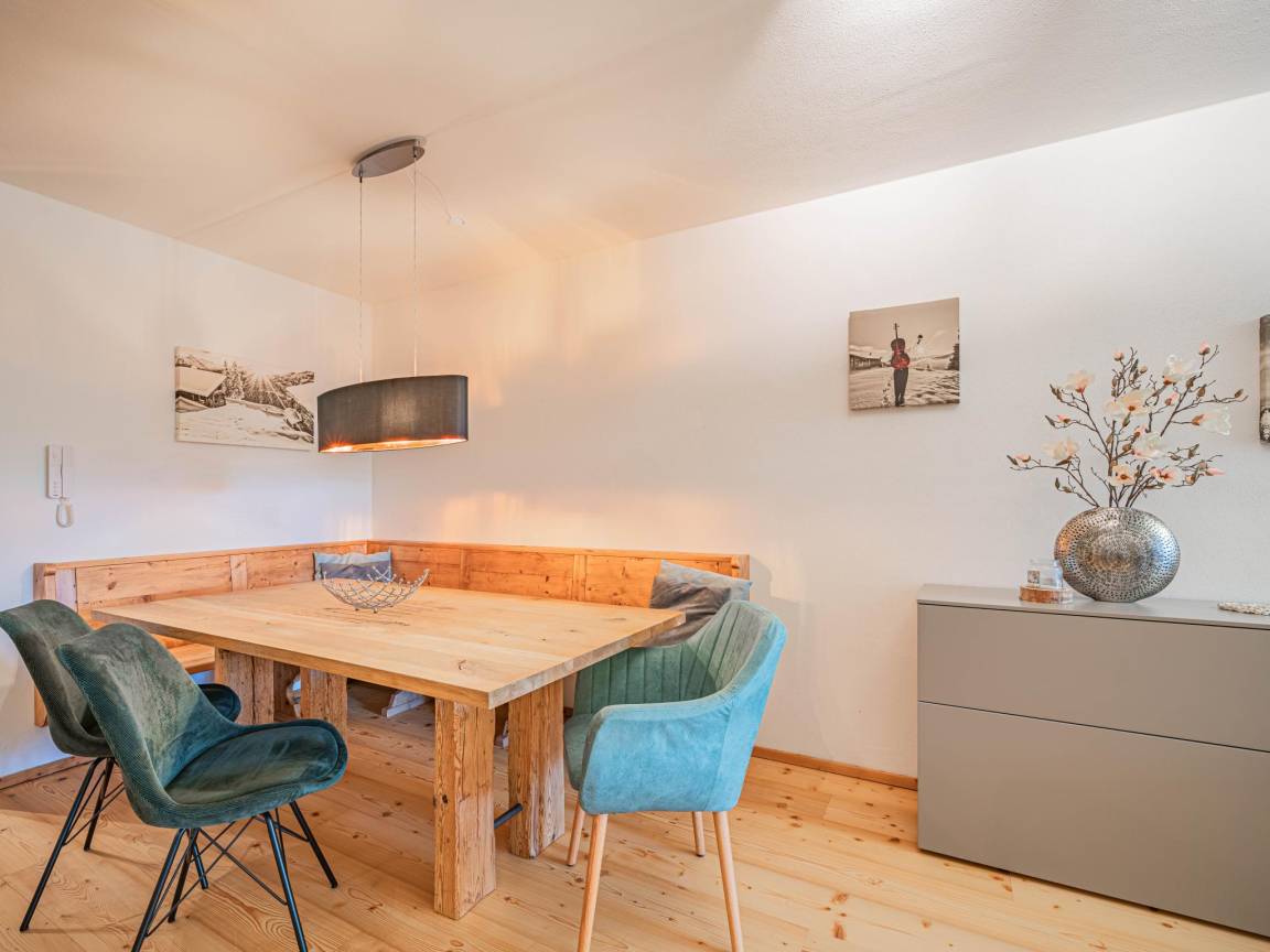 Hausbeschreibung : Diese traumhafte Ferienwohnung vereint alpinen Charme mit modernem Komfort. Der großzügige Wohnbereich, eine voll ausgestattete Küche und gemütliche Schlafzimmer (eines davon ohne Fenster) bieten alles für erholsame Tage in den Bergen. Besonders hervorzuheben ist die eigene Sauna, die nach einem Tag auf der Piste zur puren Entspannung einlädt. Der Skilift ist nur wenige Meter entfernt und die Piste endet direkt am Haus. Ein Skiraum mit Heizung sorgt für warme, trockene Skischuhe