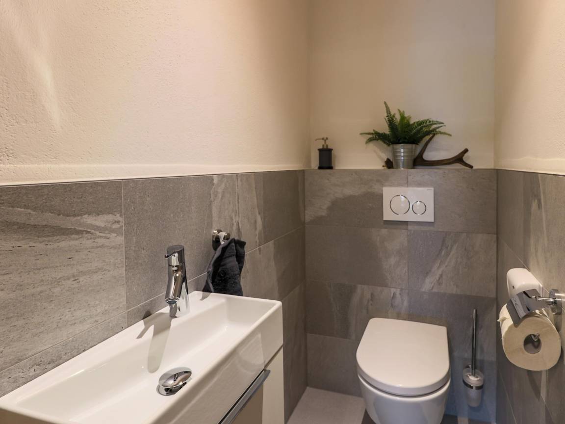 Layout : Gästeunterkunft Parterre: Küche mit Wasserkocher, Kochherd(4 Kochplatten, Ceranfeld), Dunstabzugshaube, Kaffeemaschine(cups, Filter), Backofen, Geschirrspüler, Kühl-/Gefrierkombination , Wohn/Esszimmer mit Doppelschlafcouch, TV, Esstisch, Sitzecke , Schlafzimmer mit Doppelbett, TV , Schlafzimmer mit Doppelbett, Etagenbett, TV , Badezimmer mit Dusche, Sauna , Badezimmer mit Dusche, Waschbecken, Toilette , Toilette mit Waschbecken , Terrasse(überdacht), Garten(Hund kann nicht weglaufen, umzäunt), 2x Parkplatz