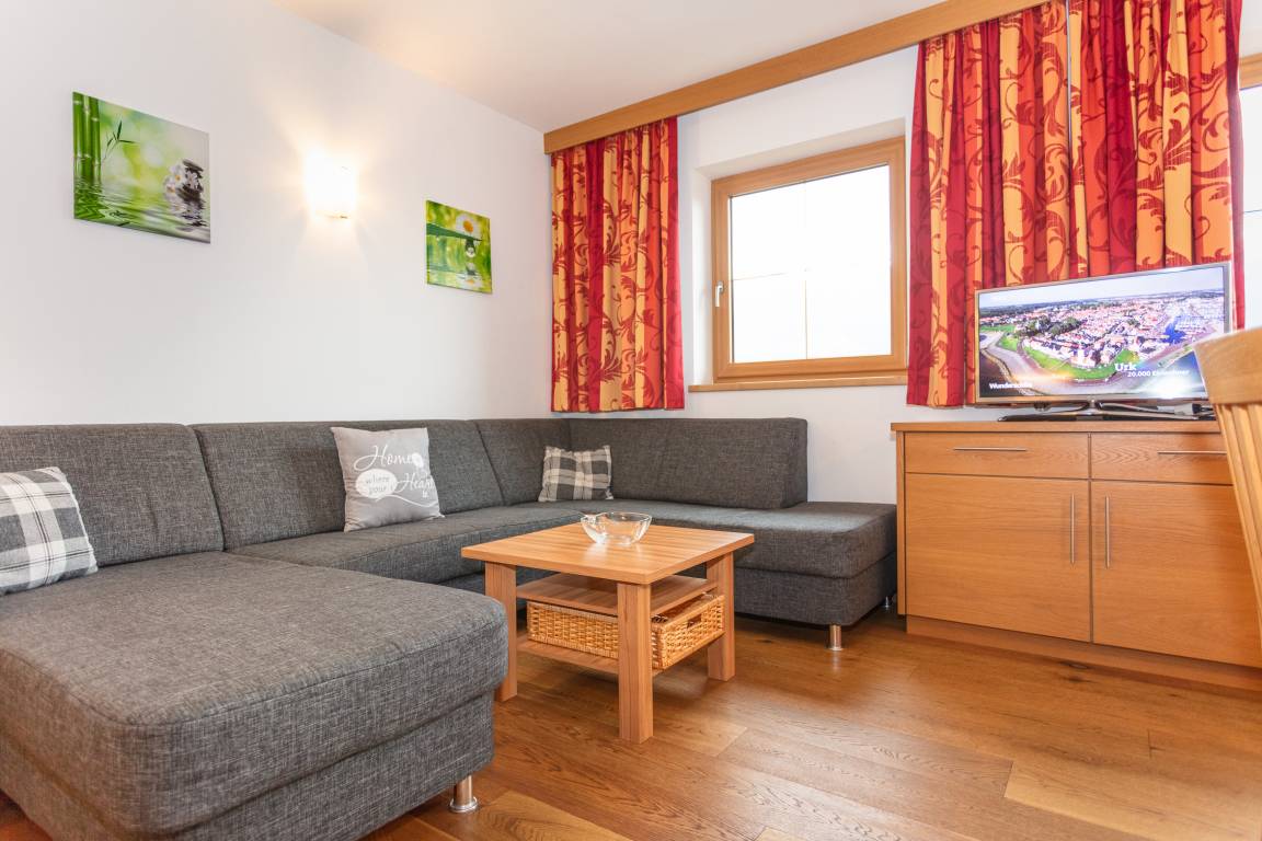 Ihr Appartement befindet sich auf der zweiten Etage und bittet Platz für 4-6 Personen. Es besteht aus einem großen Wohnzimmer mit offener Küche, 2 Schlafzimmern und 2 modernen Badezimmer. Vom Balkon haben Sie einen atemberaubenden Blick auf den Nationalpark Hohe Tauern. Aufgrund der etwas erhöhten Lage ist auch der Blick auf den Ort sehr imposant.