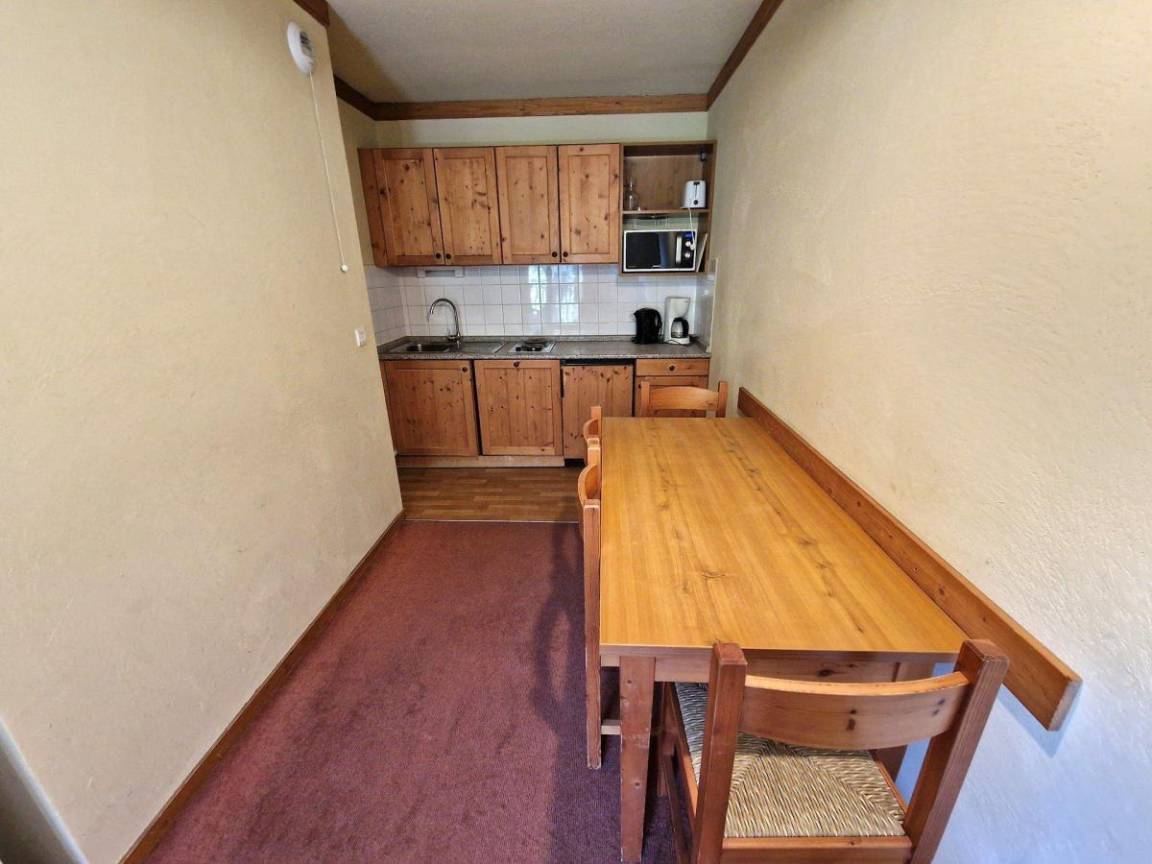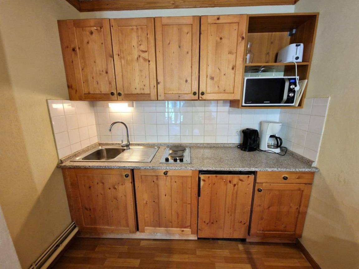 Fläche von ungefähr 28 m². 3te Etage. Blick berg (Massif de la Vanoise). Wohnzimmer mit Ausziehschlafcouch für 2 Personen (2 personnes), TV. Schlafzimmer mit Doppelbett. mit Kaffeemaschine (filtres), Geschirrspülmaschine, Mikrowellenherd, 4 Herdplatten, Kühlschrank. Badezimmer. separates WC. Balkon.