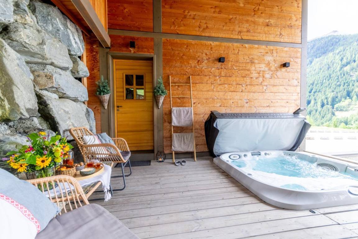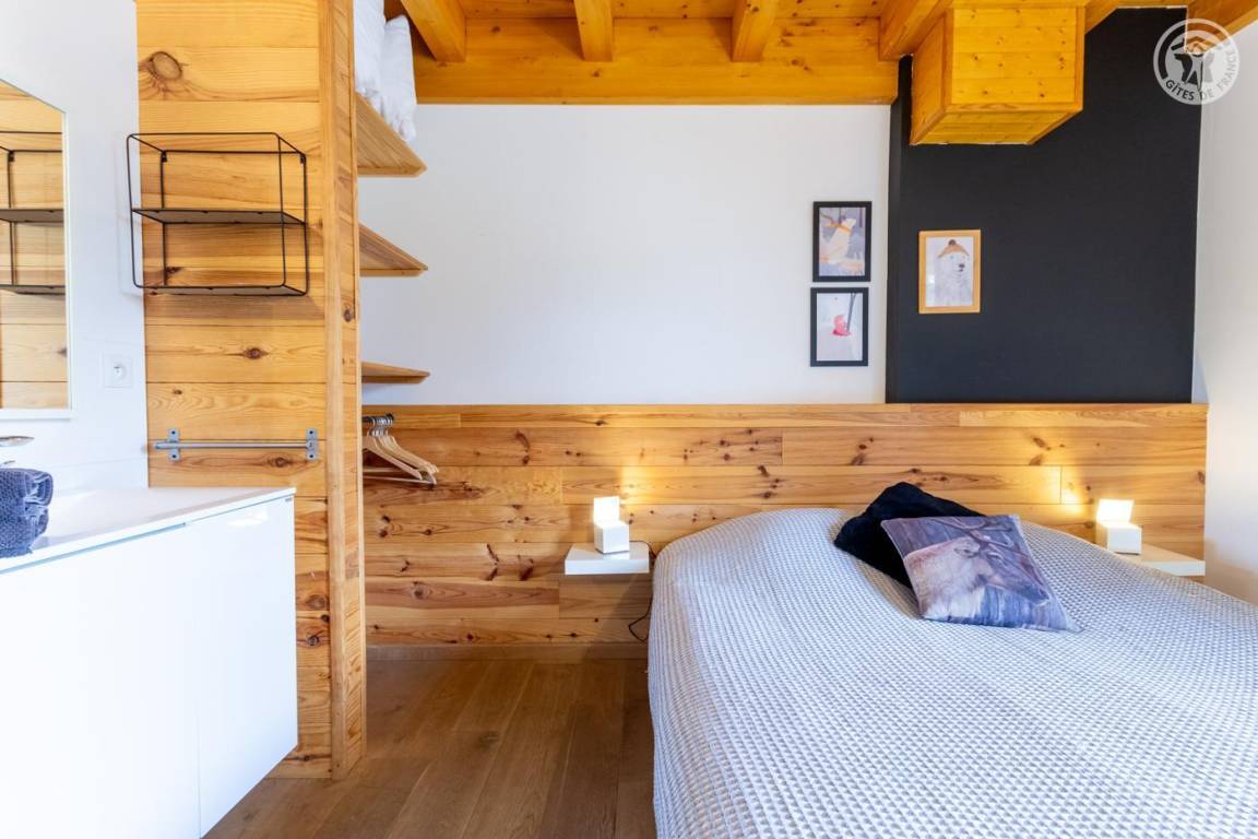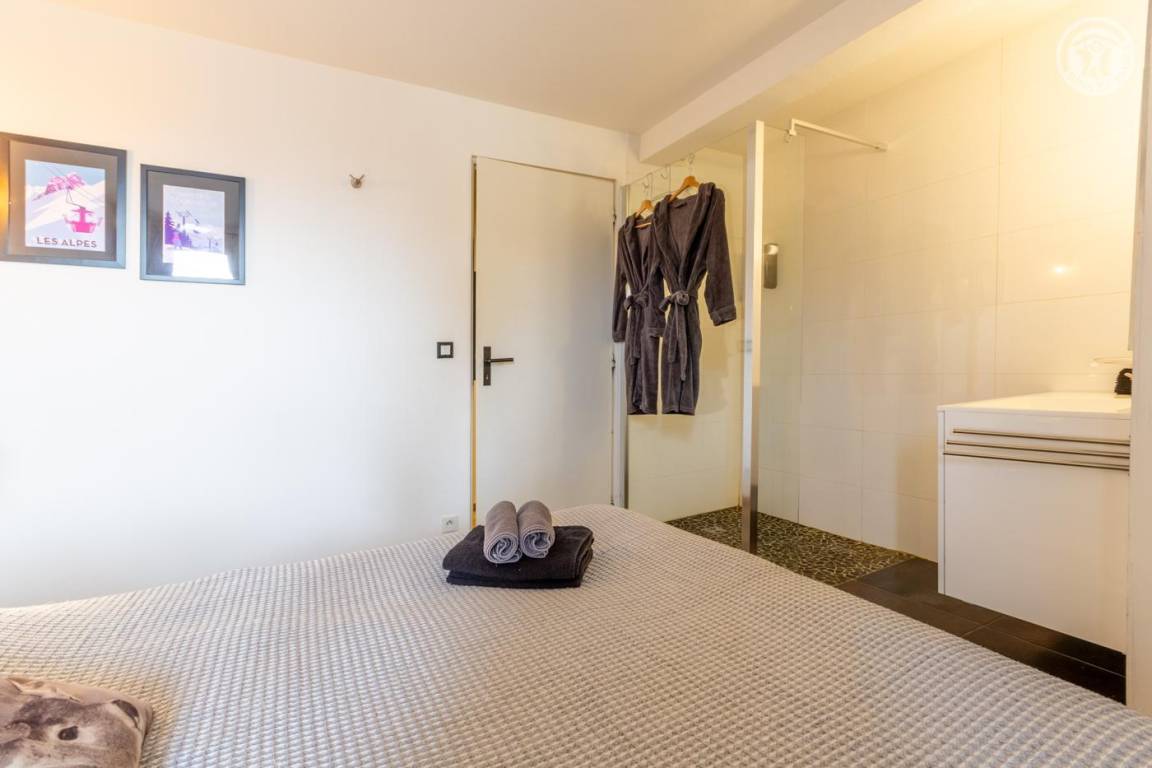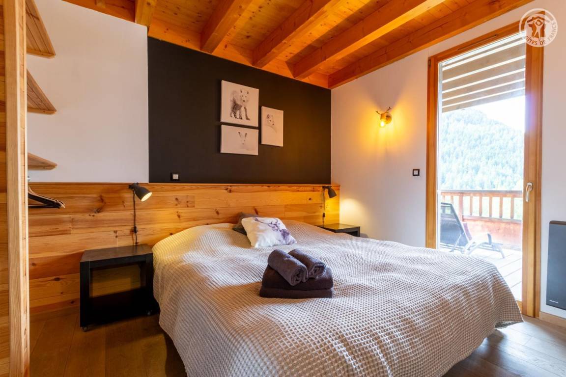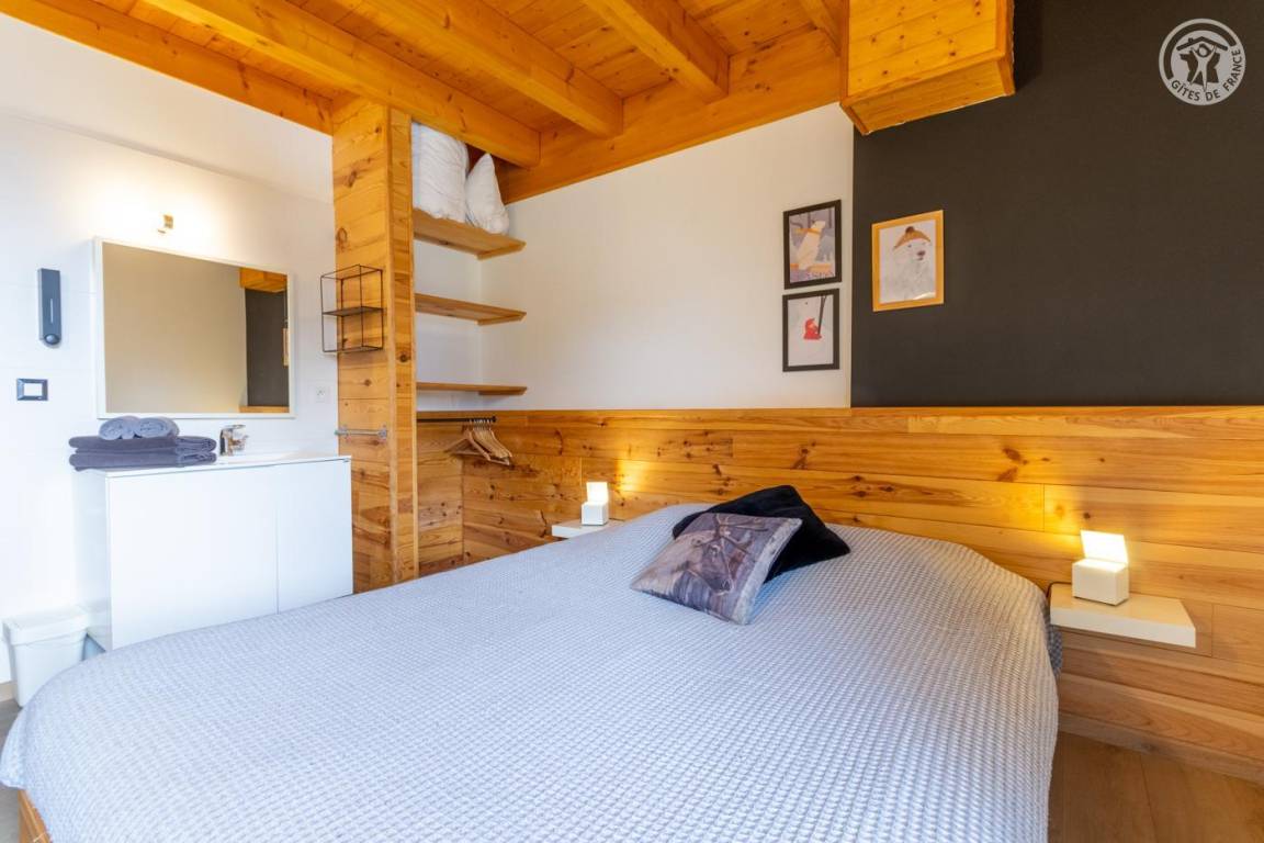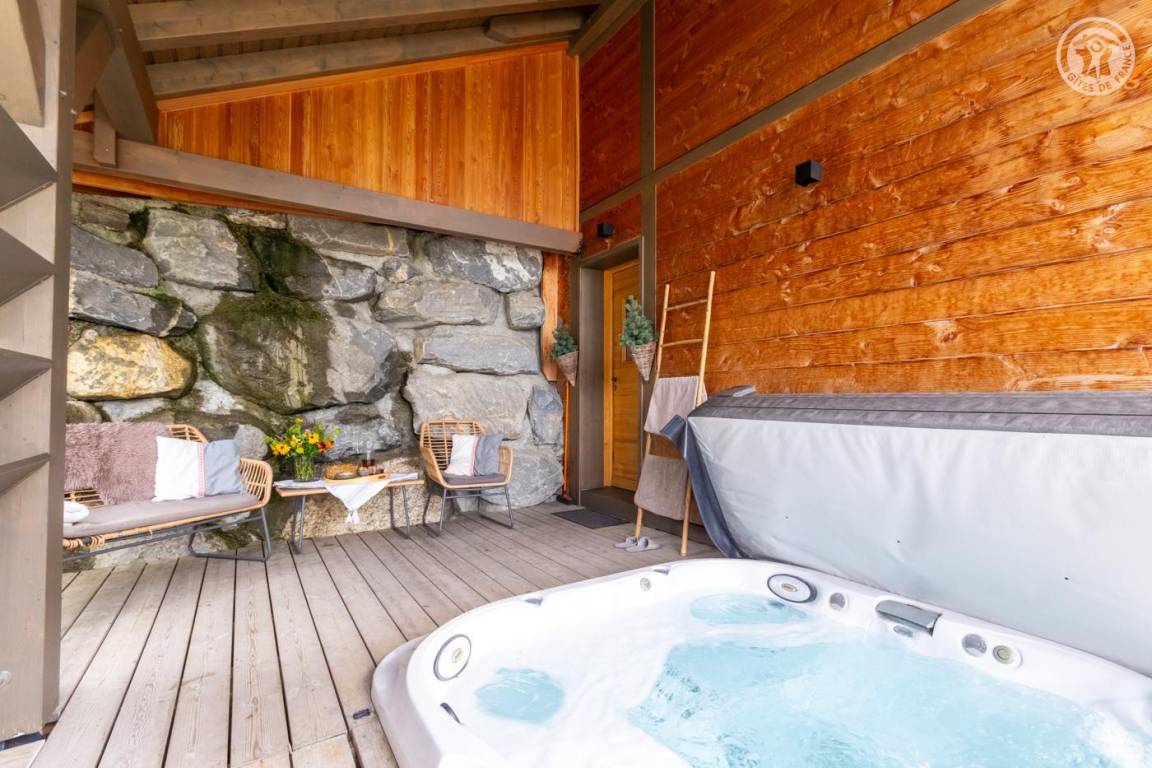 Individuelles Chalet auf 3 Ebenen. Im Erdgeschoss: Eingang mit Schuhtrockner und Skiständer, Waschküche (Waschmaschine und Trockner), 1 Schlafzimmer mit zum Schlafzimmer hin offenem Duschbereich (4 Einzelbetten 80x200 cm, davon 2 Einzelbetten und 2 Etagenbetten), 1 Schlafzimmer mit Duschbereich offen zum Schlafzimmer (1 Doppelbett 160x200 cm), separates WC. Im 1. Stock: 1 Schlafzimmer mit Badezimmer (Badewanne + Doppeldusche) (2 Einzelbetten 90x200 cm, die zusammengestellt werden können), 1 Schlafzimmer mit Waschbeckenbereich (1 Doppelbett 160x200 cm), separates WC, Wellnessbereich mit Sauna 8 Plätze, Dusch- und Ruhebereich, Zugang zum Outdoor-Spa und der Terrasse mit Gartentischen. Im 2. Stock: großes Wohnzimmer mit Wohnküche, Zugang zum Balkon mit entspannenden Gartenmöbeln. 1 privater Parkplatz vor dem Chalet + kostenloser öffentlicher Parkplatz vor dem Chalet.