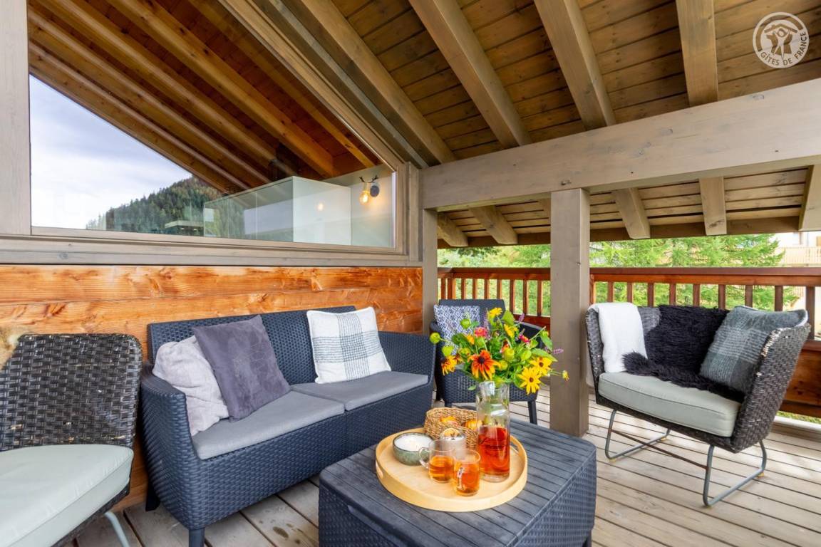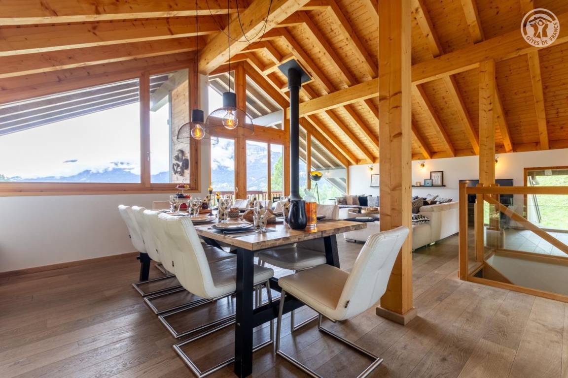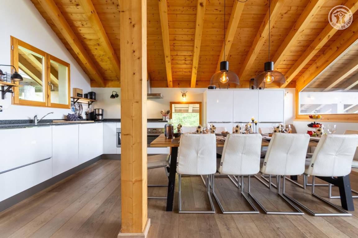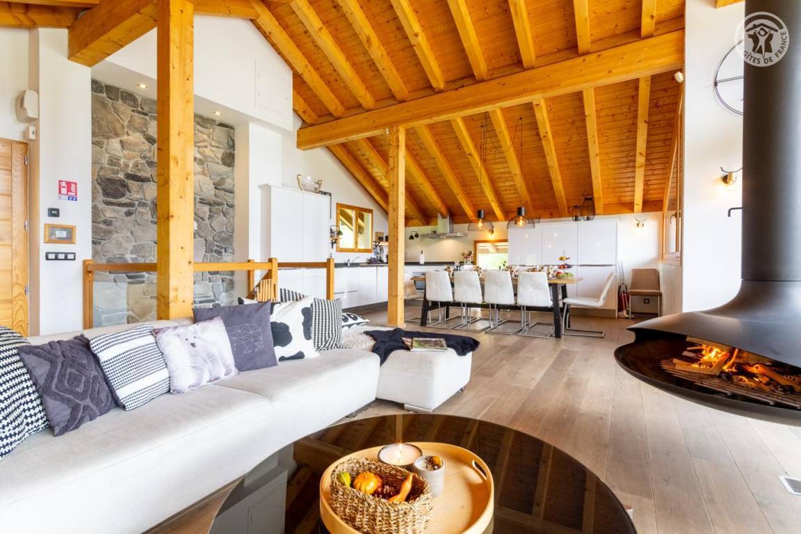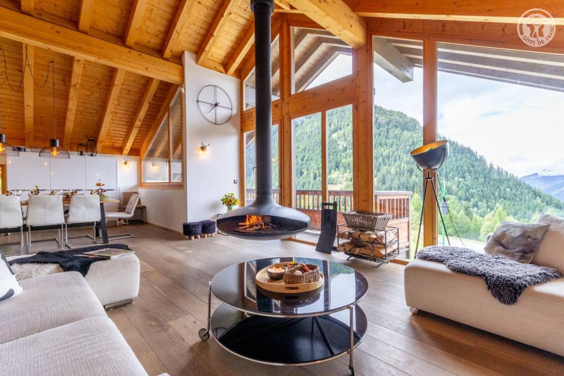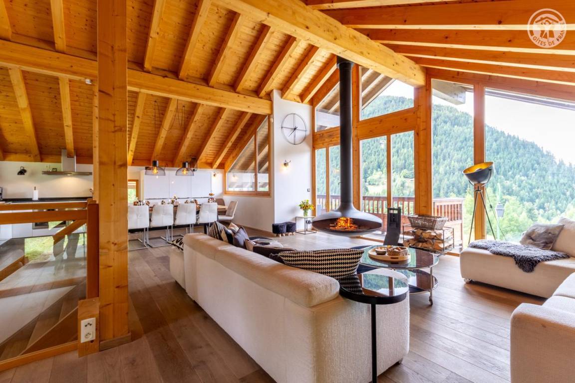 Individuelles Chalet auf 3 Ebenen. Im Erdgeschoss: Eingang mit Schuhtrockner und Skiständer, Waschküche (Waschmaschine und Trockner), 1 Schlafzimmer mit zum Schlafzimmer hin offenem Duschbereich (4 Einzelbetten 80x200 cm, davon 2 Einzelbetten und 2 Etagenbetten), 1 Schlafzimmer mit Duschbereich offen zum Schlafzimmer (1 Doppelbett 160x200 cm), separates WC. Im 1. Stock: 1 Schlafzimmer mit Badezimmer (Badewanne + Doppeldusche) (2 Einzelbetten 90x200 cm, die zusammengestellt werden können), 1 Schlafzimmer mit Waschbeckenbereich (1 Doppelbett 160x200 cm), separates WC, Wellnessbereich mit Sauna 8 Plätze, Dusch- und Ruhebereich, Zugang zum Outdoor-Spa und der Terrasse mit Gartentischen. Im 2. Stock: großes Wohnzimmer mit Wohnküche, Zugang zum Balkon mit entspannenden Gartenmöbeln. 1 privater Parkplatz vor dem Chalet + kostenloser öffentlicher Parkplatz vor dem Chalet.