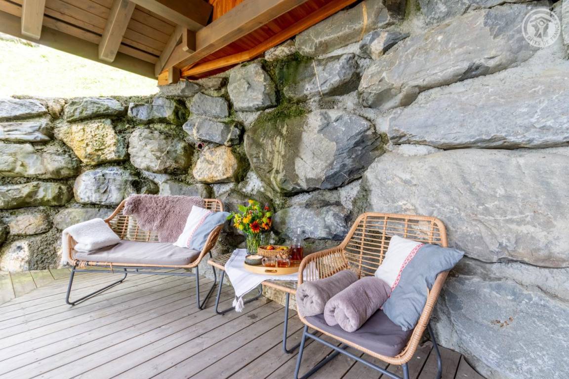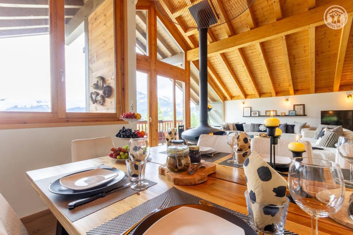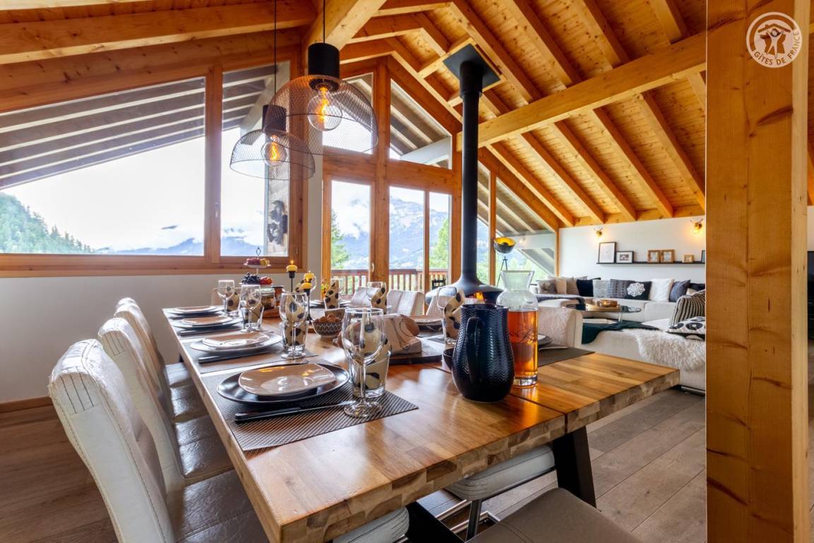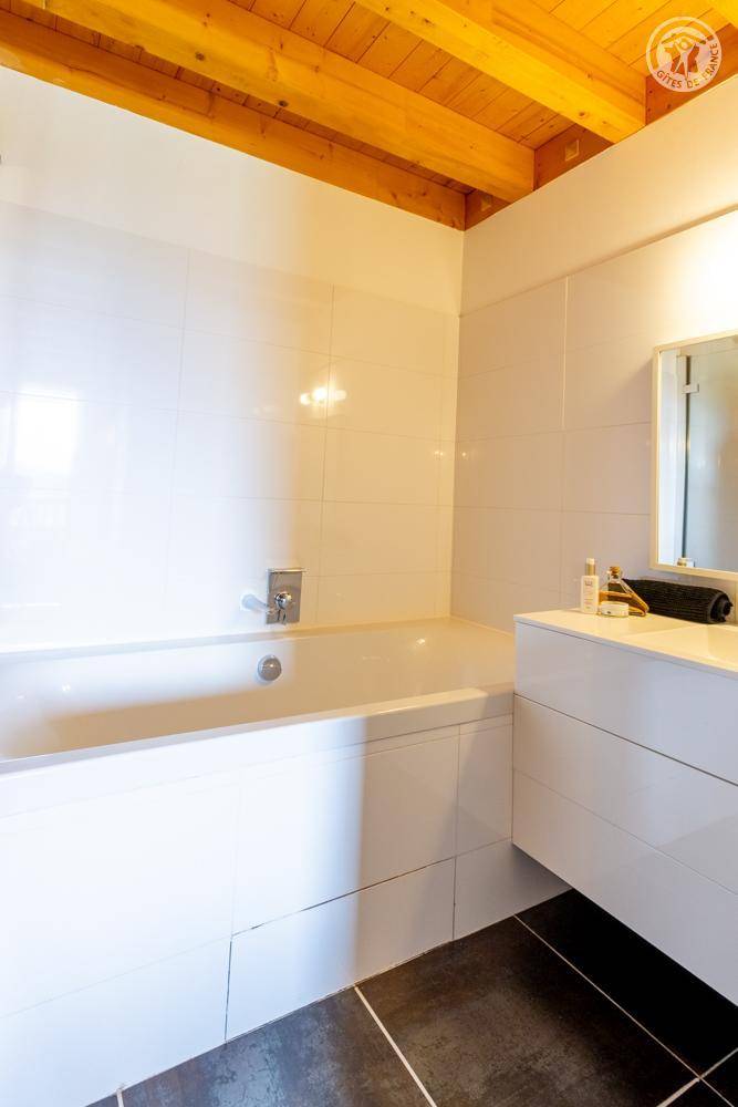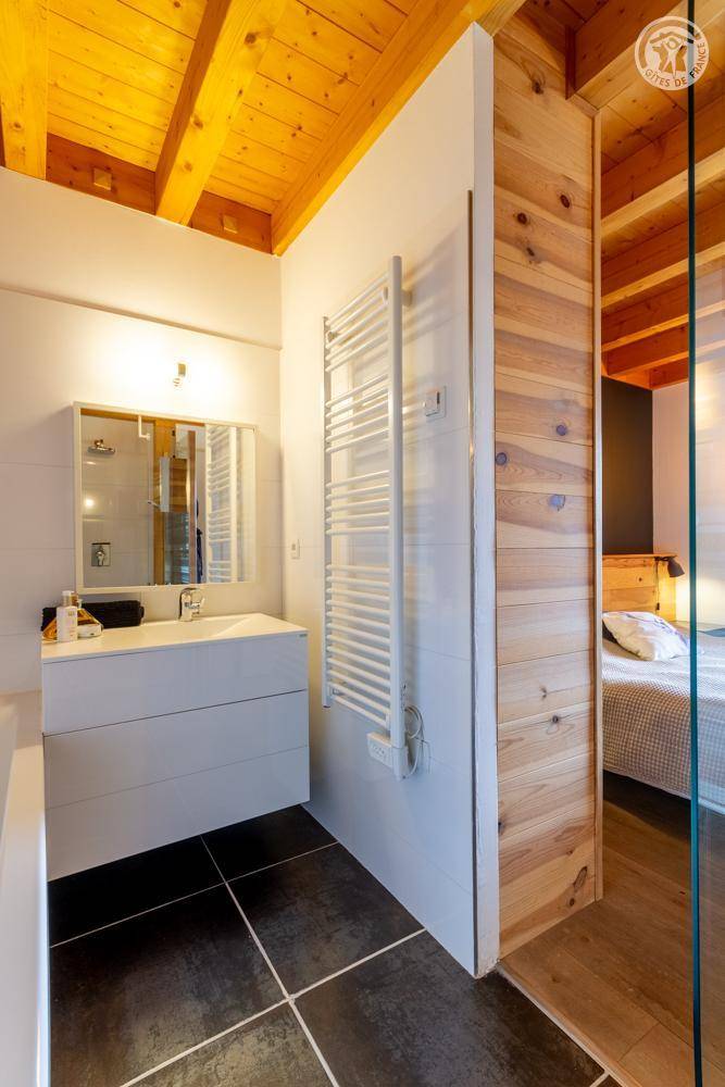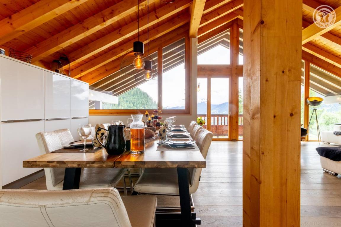 Individuelles Chalet auf 3 Ebenen. Im Erdgeschoss: Eingang mit Schuhtrockner und Skiständer, Waschküche (Waschmaschine und Trockner), 1 Schlafzimmer mit zum Schlafzimmer hin offenem Duschbereich (4 Einzelbetten 80x200 cm, davon 2 Einzelbetten und 2 Etagenbetten), 1 Schlafzimmer mit Duschbereich offen zum Schlafzimmer (1 Doppelbett 160x200 cm), separates WC. Im 1. Stock: 1 Schlafzimmer mit Badezimmer (Badewanne + Doppeldusche) (2 Einzelbetten 90x200 cm, die zusammengestellt werden können), 1 Schlafzimmer mit Waschbeckenbereich (1 Doppelbett 160x200 cm), separates WC, Wellnessbereich mit Sauna 8 Plätze, Dusch- und Ruhebereich, Zugang zum Outdoor-Spa und der Terrasse mit Gartentischen. Im 2. Stock: großes Wohnzimmer mit Wohnküche, Zugang zum Balkon mit entspannenden Gartenmöbeln. 1 privater Parkplatz vor dem Chalet + kostenloser öffentlicher Parkplatz vor dem Chalet.