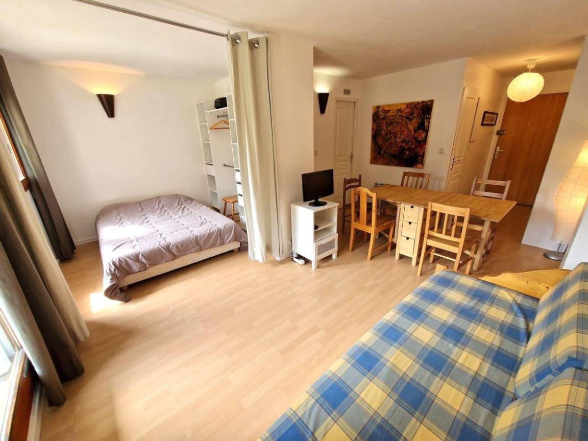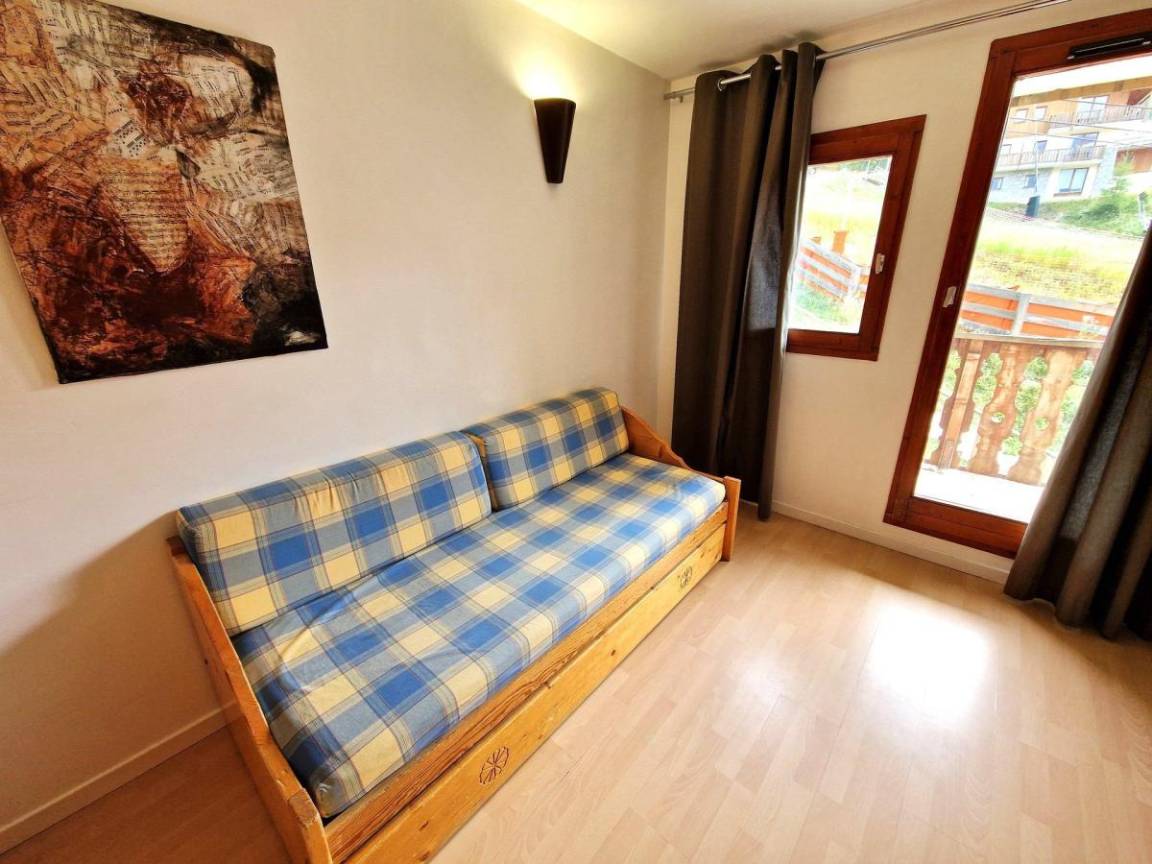Die Residenz Chalet Club 1 liegt am Fuße der Pisten. Von den Balkonen Ihrer Apartments aus können Sie die 50 Meter entfernte Charmasson-Seilbahn sehen. Das Ortszentrum und alle Geschäfte sind 400 Meter entfernt und bieten alle Annehmlichkeiten und Aktivitäten. Fläche von ungefähr 32 m². Erdgeschoss. Orientierung : Süd. Blick skipisten. Wohnzimmer mit Ausziehschlafcouch für 2 Personen. Schlafbereich mit Doppelbett. offener Schlafbereich mit 2 Stockbetten. Kochnische mit Geschirrspülmaschine, Mikrowellenherd, 2 elektronische Herdplatten, Kühlschrank. Badezimmer. separates WC. Balkon. Die oberen Betten sind nicht für Kinder unter 6 Jahren geeignet.