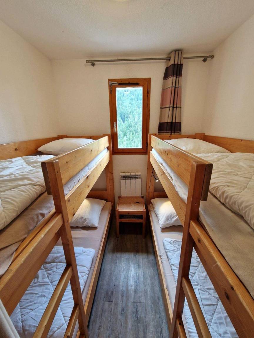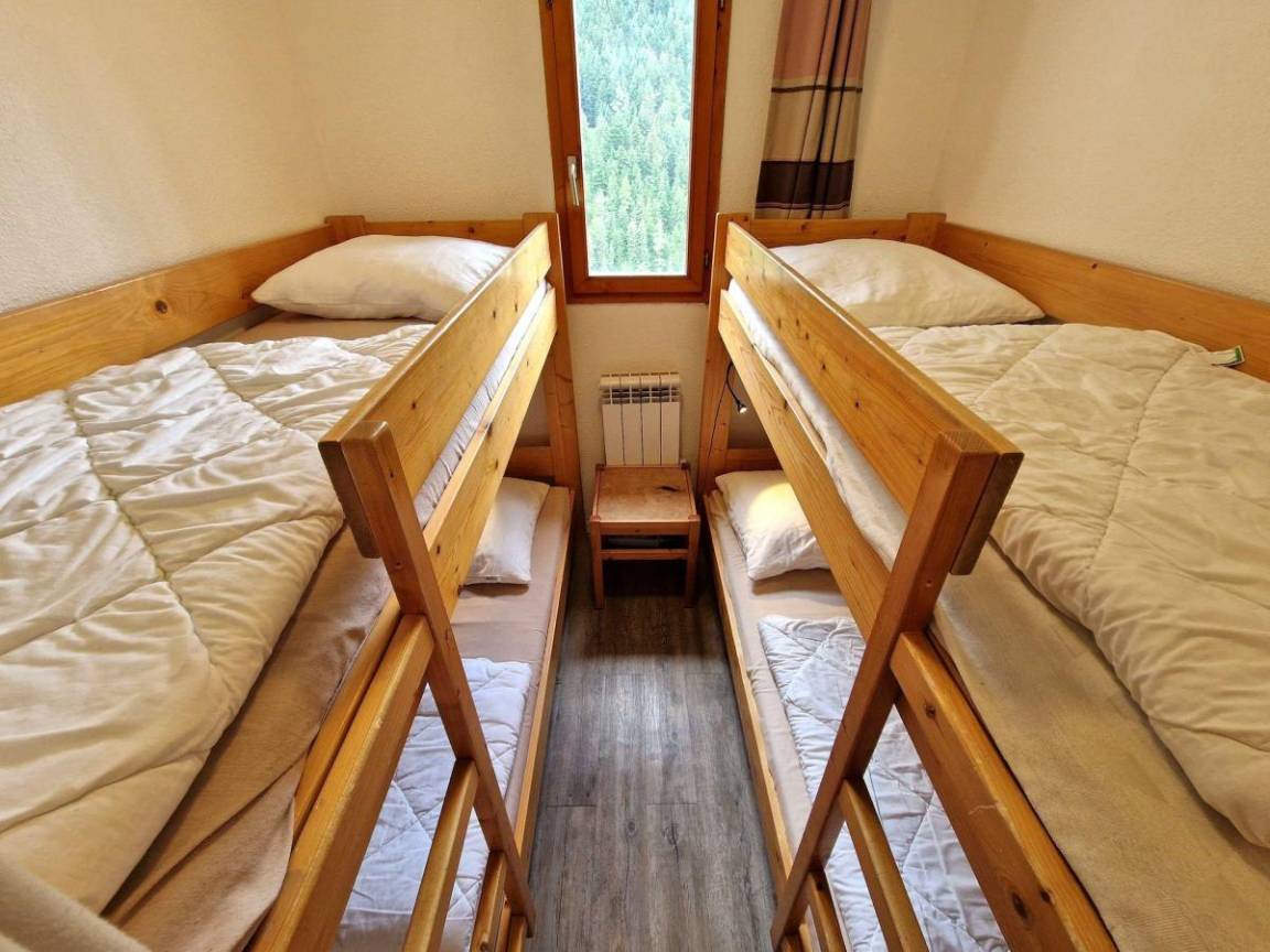 Großer öffentlicher Parkplatz am Fuße der Residenz. Fläche von ungefähr 55 m². 3te Etage. Blick offene und Berg (Massif de la Vanoise). Wohnzimmer mit Klappschlafcouch, TV. Schlafzimmer mit Doppelbett, . Schlafzimmer mit Doppelbett. mit Backofen, Geschirrspülmaschine, Mikrowellenherd, 4 Herdplatten, Kühlschrank. offener Schlafbereich mit 4 Stockbetten. Badezimmer mit WC. separates WC. Balkon. Die oberen Betten sind nicht für Kinder unter 6 Jahren geeignet.