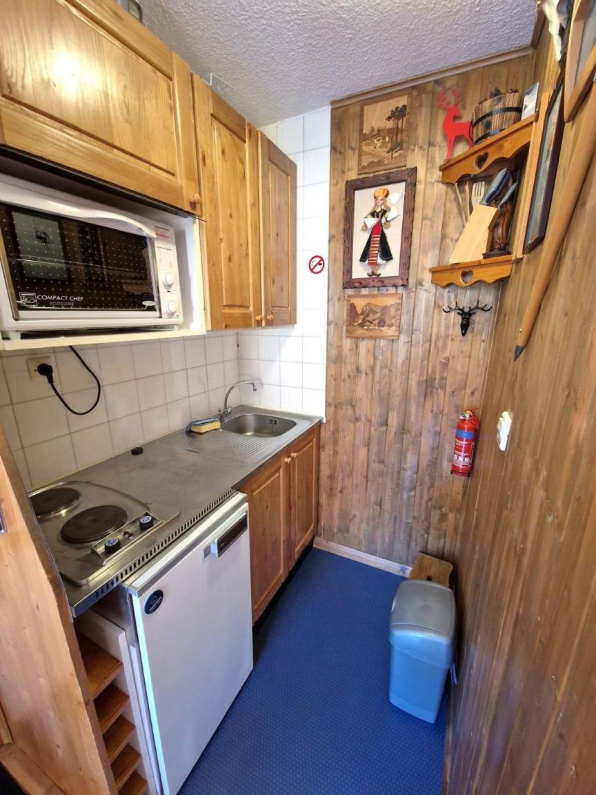 Residenz mit Aufzug. Fläche von ungefähr 19 m². 5te Etage. Orientierung : Süd-Ost. Wohnzimmer mit DVD, , Ausziehschlafcouch für 2 Personen (2 per), . mit Backofen, 2 Herdplatten, Kühlschrank. offener Schlafbereich mit . Badezimmer mit WC. Balkon.