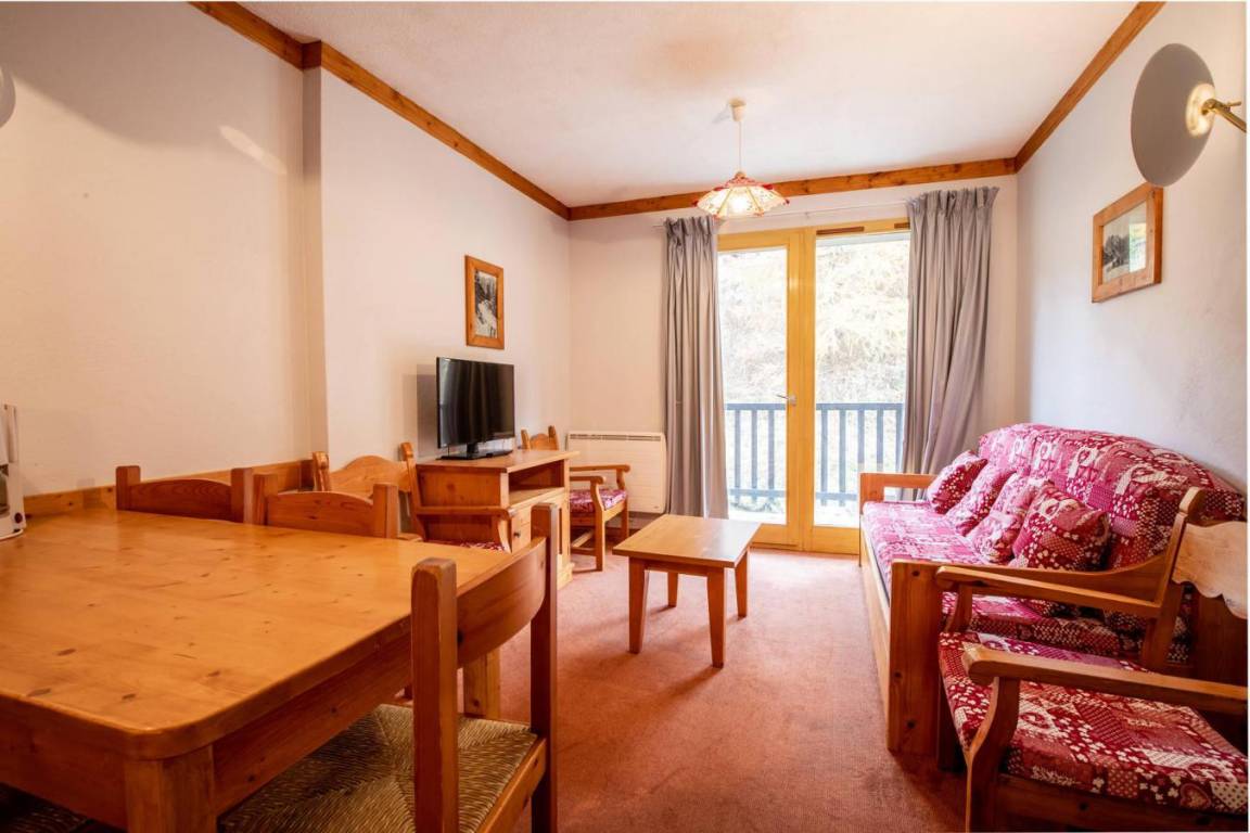 Fläche von ungefähr 40 m². 3te Etage. Orientierung : Ost, Süd-Ost, Süd. Blick berg ODER Blick skipisten. Wohnzimmer mit Ausziehschlafcouch für 2 Personen. Schlafzimmer mit Doppelbett. offener Schlafbereich mit Stockbetten. Kochnische mit Geschirrspülmaschine, Mikrowellenherd, Herdplatten, Kühlschrank. Waschräume mit Dusche, WC. Badezimmer mit Badewanne. Balkon. Die oberen Betten sind nicht für Kinder unter 6 Jahren geeignet.