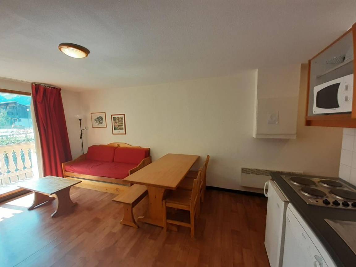 Die Residenz Cheval Blanc liegt 200 m vom Sessellift Charmasson und 500 m von der Seilbahn und den Geschäften von Arrondaz entfernt. Fläche von ungefähr 36 m². 5te Etage. Orientierung : Süd. Blick station. Wohnzimmer mit Ausziehschlafcouch für 2 Personen (80*190), TV. Schlafzimmer mit Doppelbett (140*190). offener Schlafbereich mit 2 Stockbetten (80*190). Kochnische mit Wasserkocher, Kaffeemaschine (à filtres), Geschirrspülmaschine, Mikrowellenherd, 2 elektronische Herdplatten, Kühlschrank. Badezimmer mit Badewanne, Waschbecken. separates WC. Balkon. Staubsauger, Bügeleisen. Die oberen Betten sind nicht für Kinder unter 6 Jahren geeignet.
