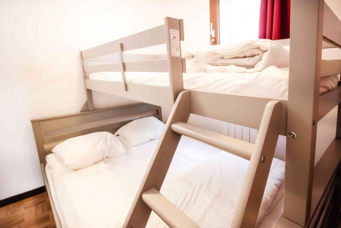 Fläche von ungefähr 66 m². 7te Etage. Orientierung : Süd. Wohnzimmer mit Ausziehschlafcouch für 2 Personen, Flachbildfernseher. 2 Schlafzimmer mit Doppelbett. Schlafzimmer mit , Doppelbett (140), Stockbett (90). offener Schlafbereich mit 2 Stockbetten. mit Geschirrspülmaschine, Mikrowellenherd, 2 Glaskeramikkochfelder, Kühlschrank. Badezimmer mit Badewanne, Waschbecken. separates WC. 2 duschräume mit Dusche, Waschbecken, WC. Balkon. Die oberen Betten sind nicht für Kinder unter 6 Jahren geeignet.