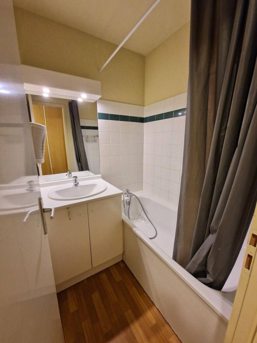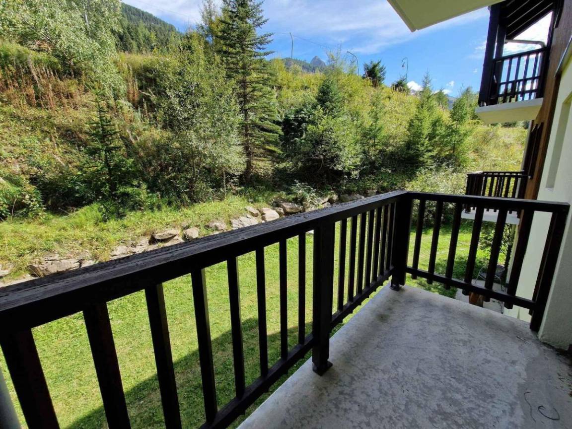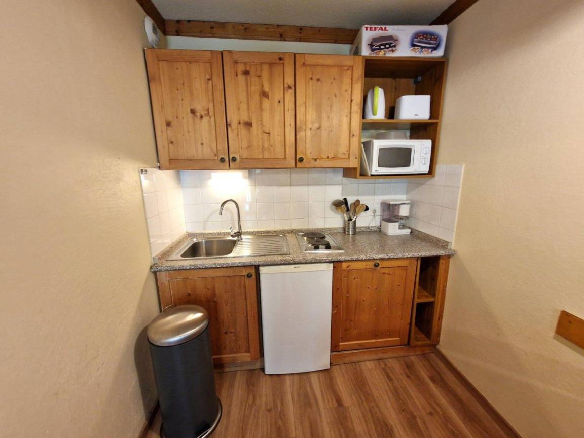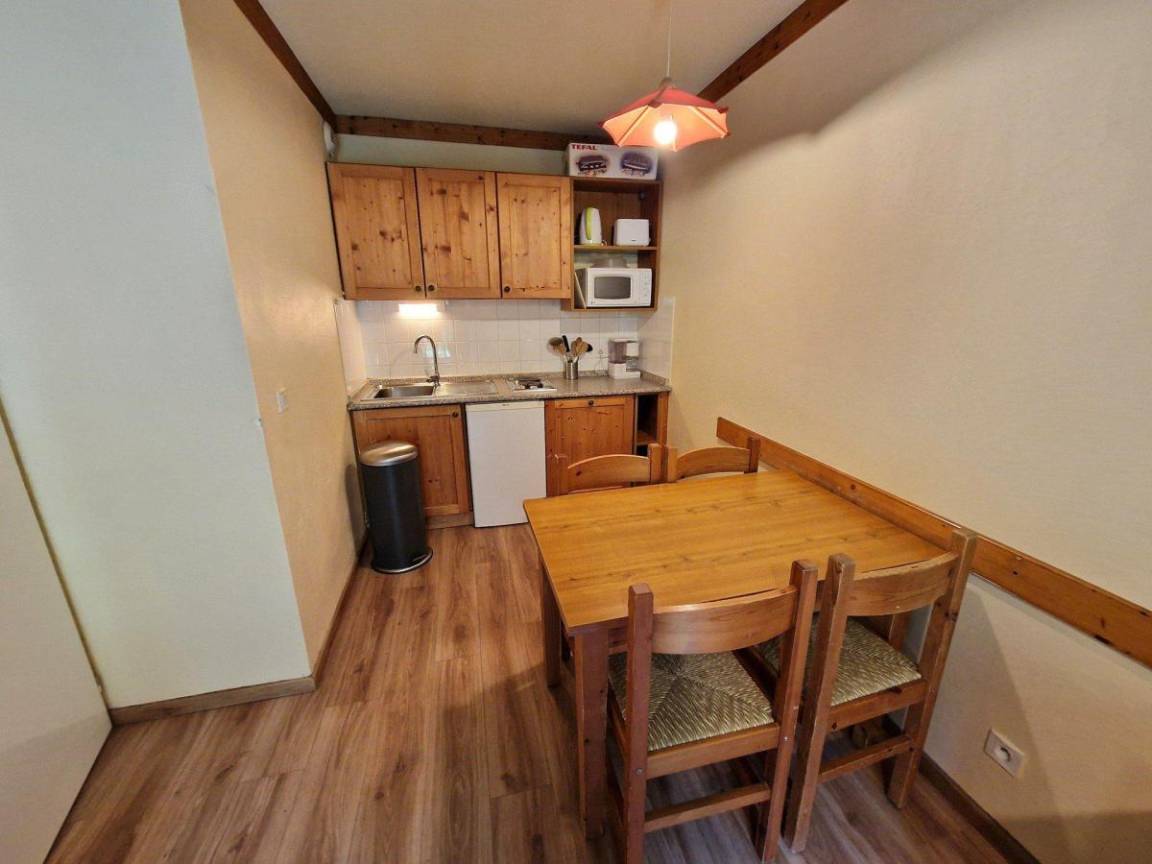 Fläche von ungefähr 28 m². 2te Etage. Blick berg (Massif de la Vanoise). Wohnzimmer mit Klappschlafcouch, TV. Schlafzimmer mit Doppelbett. mit Geschirrspülmaschine, Mikrowellenherd, 2 Herdplatten, Kühlschrank. Badezimmer. separates WC. Balkon.