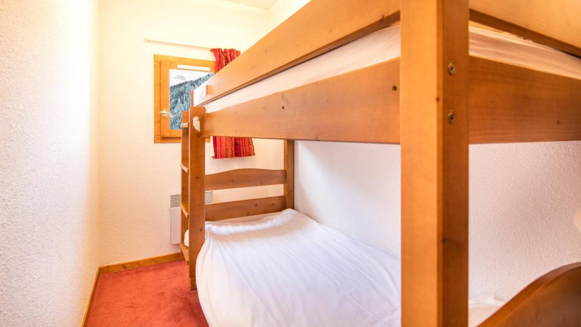 Fläche von ungefähr 43 m². Wohnzimmer mit Ausziehschlafcouch für 2 Personen. Schlafzimmer mit Doppelbett. 2 offene Schlafbereiche mit 2 Stockbetten. Kochnische mit Wasserkocher, Kaffeemaschine, Toaster, Geschirrspülmaschine, kleiner Backofen, elektronische Herdplatten, Kühlschrank. Badezimmer mit Badewanne, WC. Waschräume mit Dusche. Die oberen Betten sind nicht für Kinder unter 6 Jahren geeignet.