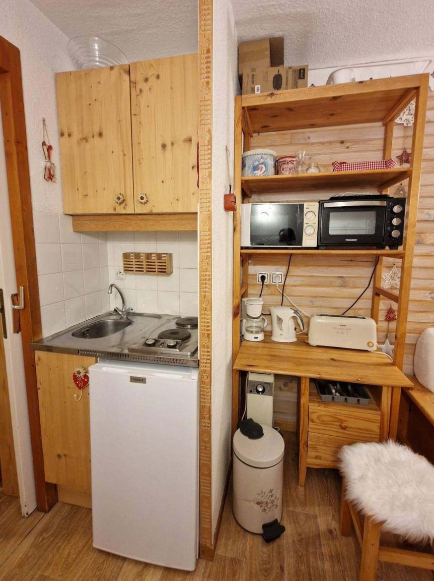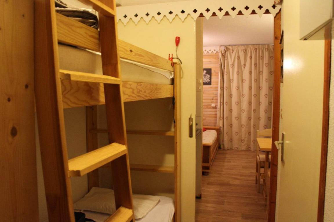 Die Residenz Chalet Club 1 liegt am Fuße der Pisten. Von den Balkonen Ihrer Apartments aus können Sie die 50 Meter entfernte Charmasson-Seilbahn sehen. Das Ortszentrum und alle Geschäfte sind 400 Meter entfernt und bieten alle Annehmlichkeiten und Aktivitäten. Fläche von ungefähr 17 m². 3te Etage. Orientierung : Süd. Wohnzimmer mit Ausziehschlafcouch für 2 Personen. offener Schlafbereich mit 2 Stockbetten. Kochnische mit Mikrowellenherd, 2 Herdplatten, Kühlschrank. Waschräume mit WC. Balkon. Die oberen Betten sind nicht für Kinder unter 6 Jahren geeignet.
