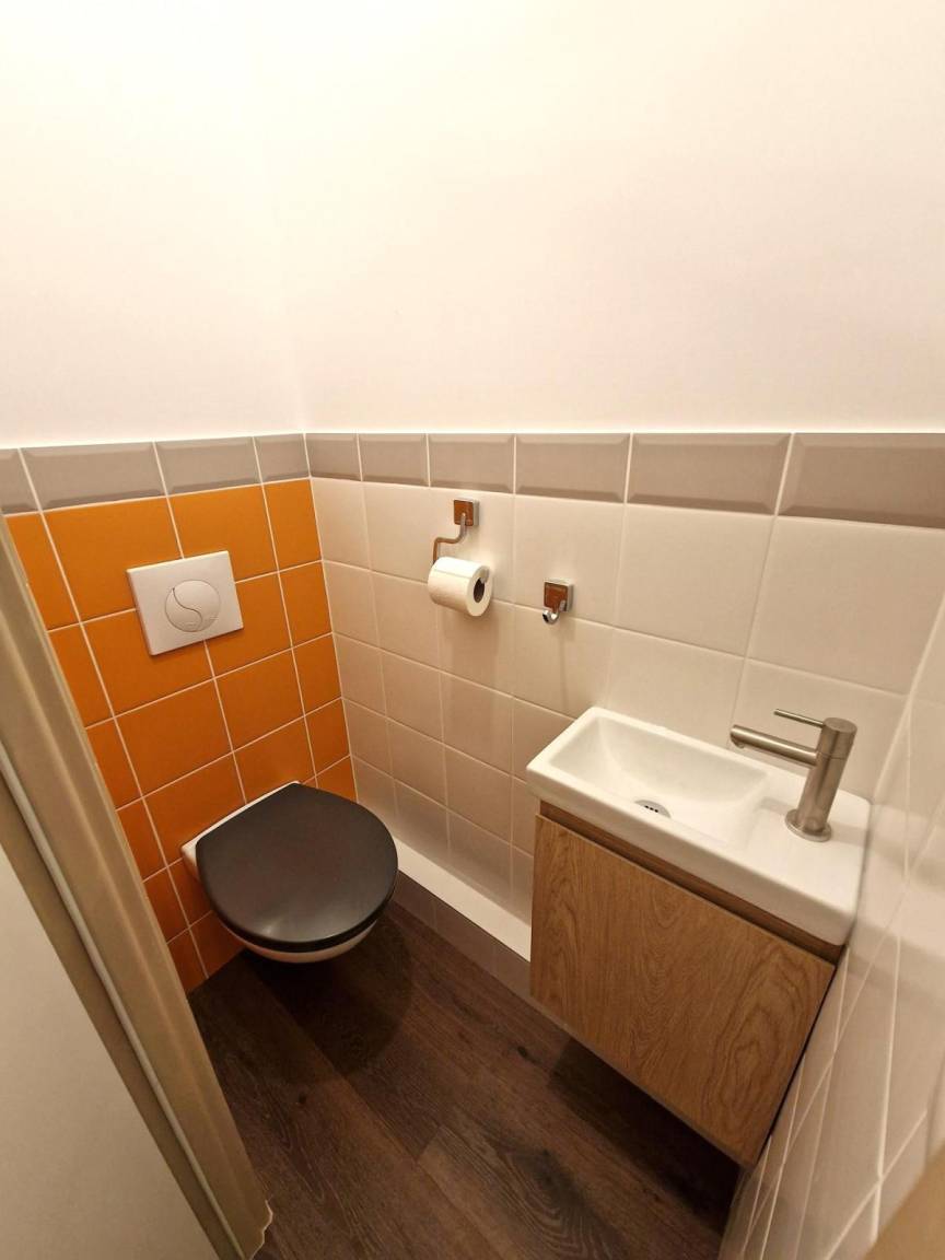 Fläche von ungefähr 56 m². Erdgeschoss. Orientierung : Ost. Wohnzimmer mit Ausziehschlafcouch für 2 Personen (2 personnes), TV. Schlafzimmer mit Doppelbett. Schlafzimmer mit Doppelbett, 2 Stockbetten. mit Geschirrspülmaschine, Mikrowellenherd, kleiner Backofen, elektronische Herdplatten, Kühlschrank. Waschräume mit WC. separates WC. Terrasse. Waschmaschine. Die oberen Betten sind nicht für Kinder unter 6 Jahren geeignet.