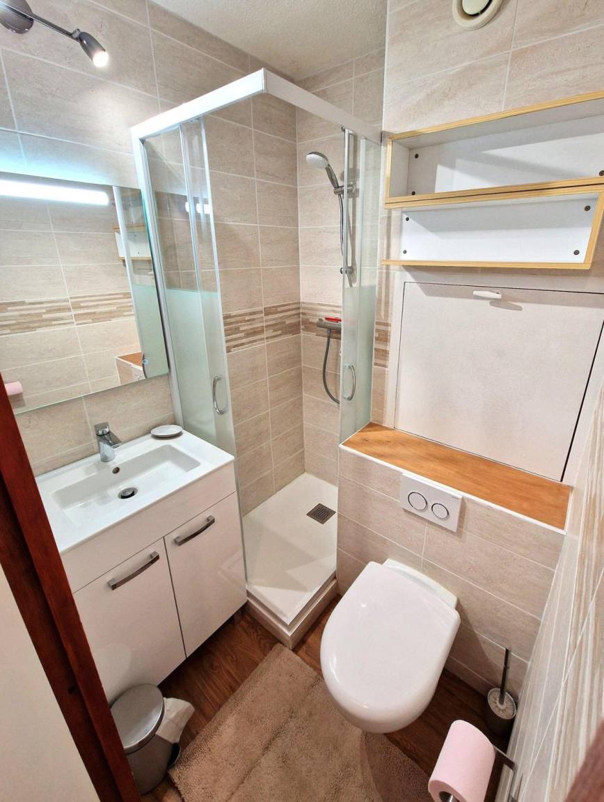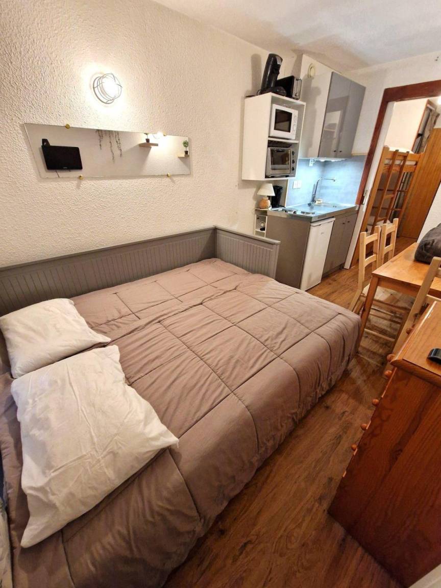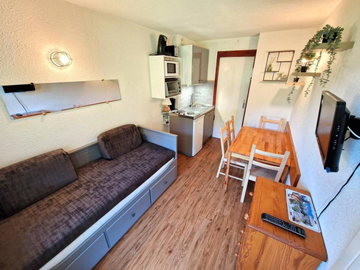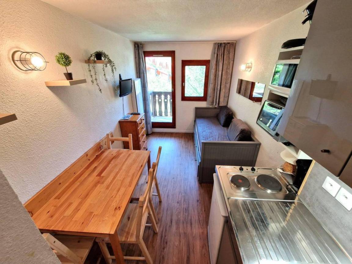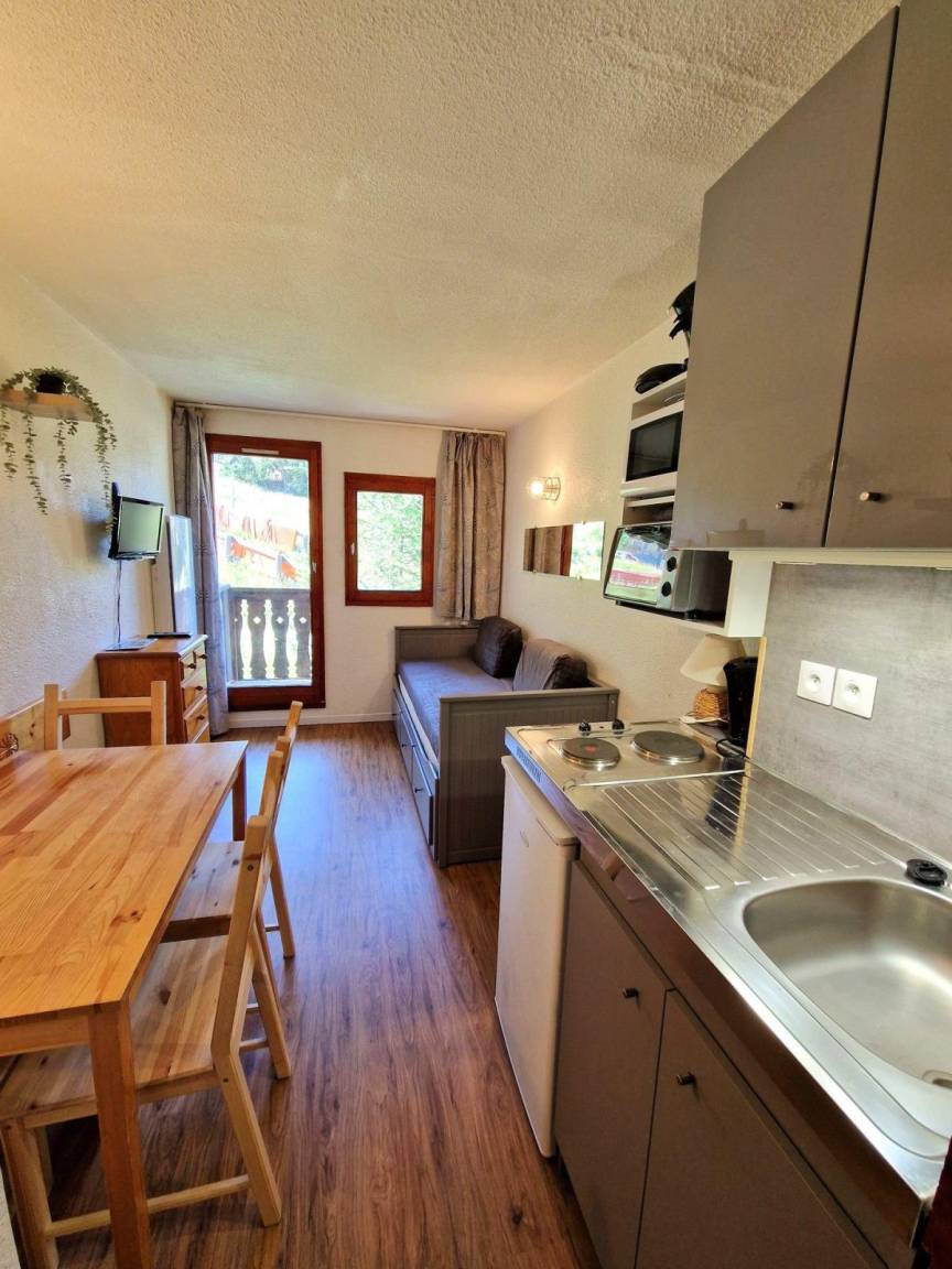 Die Residenz Chalet Club 1 liegt am Fuße der Pisten. Von den Balkonen Ihrer Apartments aus können Sie die 50 Meter entfernte Charmasson-Seilbahn sehen. Das Ortszentrum und alle Geschäfte sind 400 Meter entfernt und bieten alle Annehmlichkeiten und Aktivitäten. Fläche von ungefähr 17 m². 2te Etage. Orientierung : Süd. Wohnzimmer mit Ausziehschlafcouch für 2 Personen. offener Schlafbereich mit 2 Stockbetten. Kochnische mit Mikrowellenherd, , 2 Herdplatten, Kühlschrank. Waschräume mit WC. Balkon. Die oberen Betten sind nicht für Kinder unter 6 Jahren geeignet.