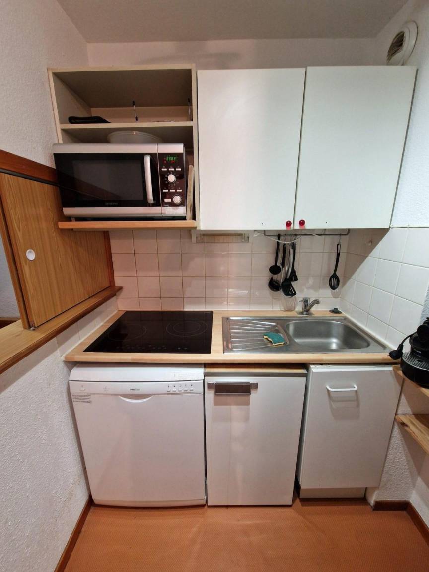 Die Residenz Les Mélèzets 2 befindet sich in idealer Lage im Herzen des Ferienortes Valfréjus. Sie befindet sich in der Nähe von Geschäften, Restaurants und Annehmlichkeiten. Die Arrondaz-Seilbahn und die Wanderwege sind etwa 50 Meter entfernt. Fläche von ungefähr 23 m². 4te Etage. Wohnzimmer mit Ausziehschlafcouch für 2 Personen (2 personnes), TV. Schlafzimmer mit Doppelbett. mit Kaffeemaschine, Geschirrspülmaschine, Mikrowellenherd, 3 Glaskeramikkochfelder, Kühlschrank. Badezimmer. separates WC. Balkon.
