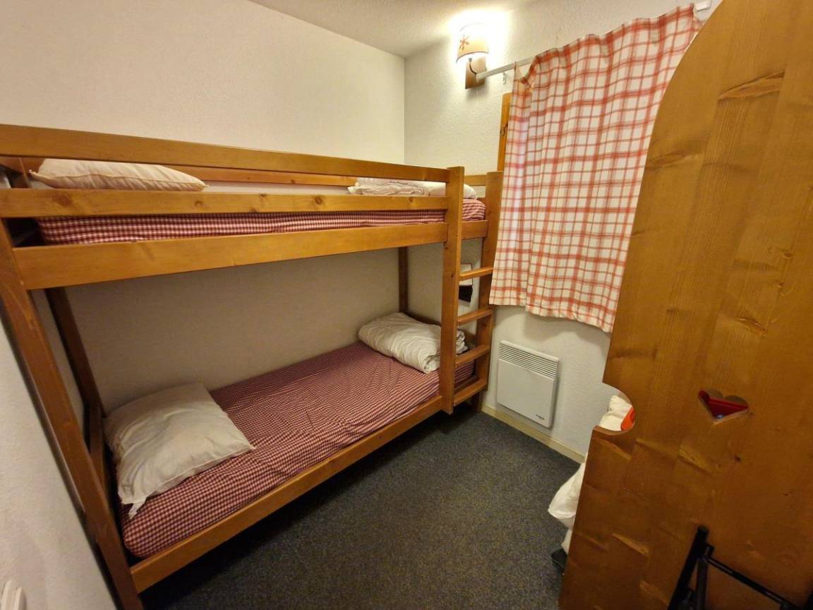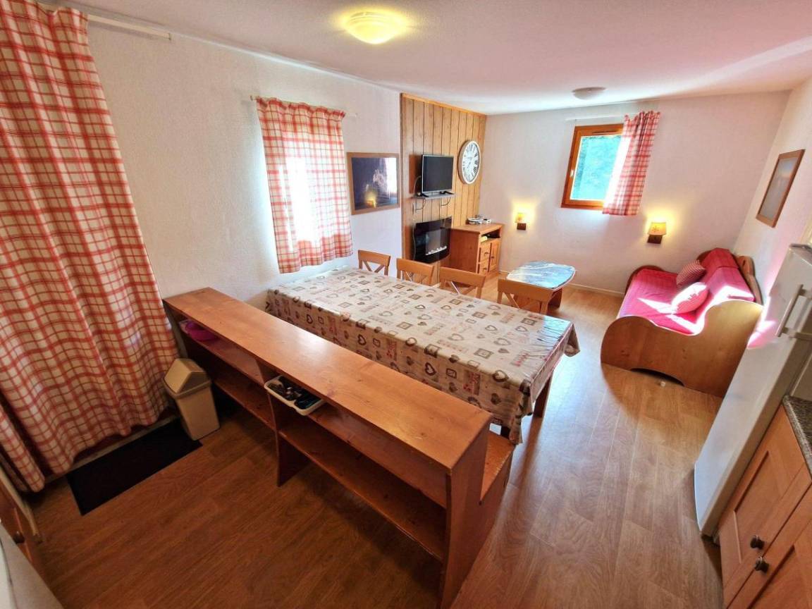 Die Residenz Les Belvédères liegt 350 m vom Zentrum des Ferienortes Valfréjus entfernt. Sie haben schnellen Zugang zu Wanderwegen. Die Gegend ist ruhig und besteht hauptsächlich aus einzelnen Chalets. Fläche von ungefähr 46 m². Erdgeschoss. Orientierung : Ost, Süd-Ost, Süd. Wohnzimmer mit 2 Ausziehbetten, TV. Schlafzimmer mit Doppelbett. Schlafzimmer mit 2 Stockbetten. mit Backofen, Geschirrspülmaschine, Mikrowellenherd, 4 Herdplatten, Kühlschrank. offener Schlafbereich mit 2 Stockbetten. Waschräume mit WC. Badezimmer mit WC. Balkon. Die oberen Betten sind nicht für Kinder unter 6 Jahren geeignet.