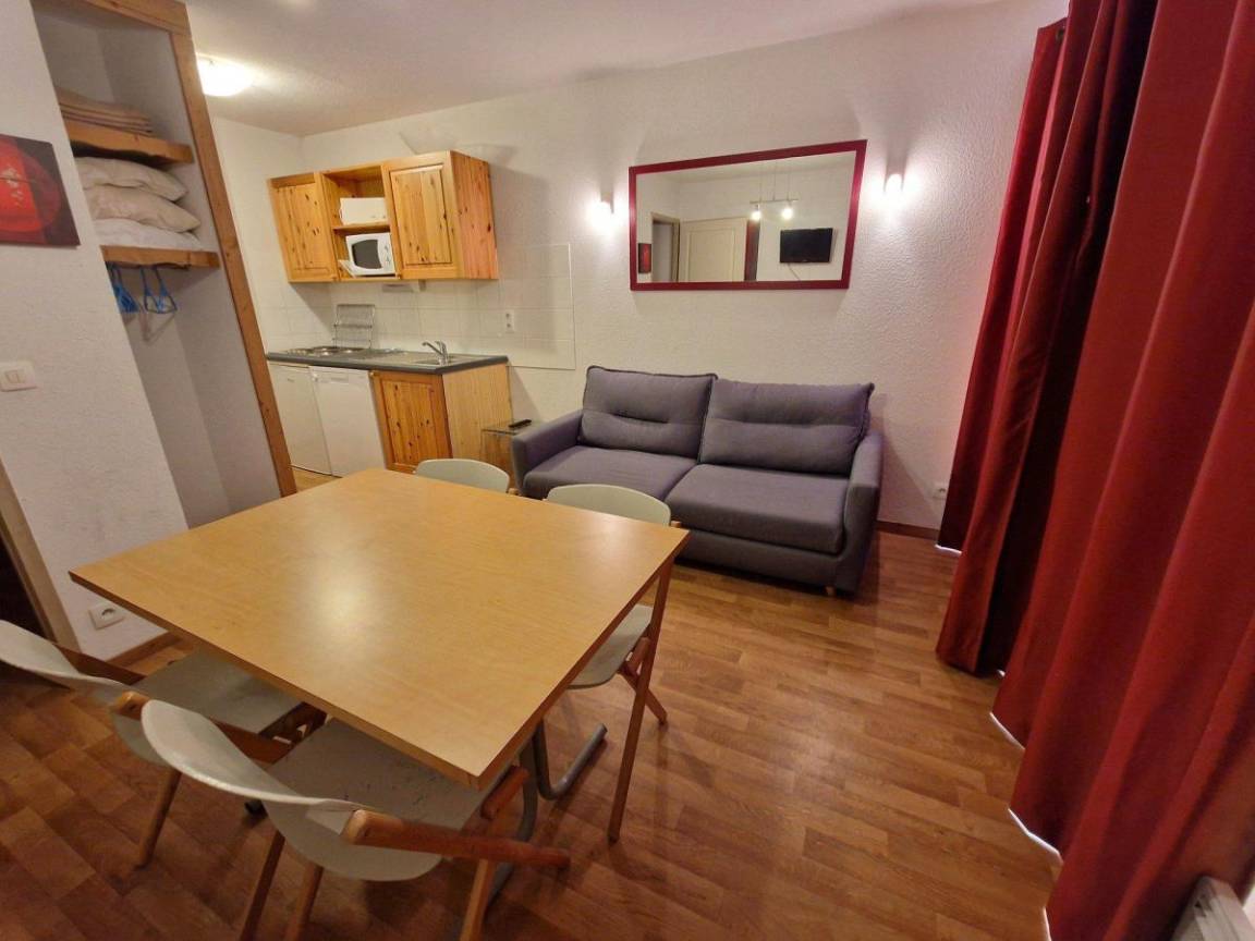 Die Residenz Les Chalets de Florence ist ideal gelegen und bietet Ihnen direkten Zugang zum Zentrum und den Geschäften des Resorts. Fläche von ungefähr 28 m². Etage -1. Orientierung : Süd. Wohnzimmer mit Klappschlafcouch (2 per), TV. Schlafzimmer mit 2 Stockbetten. mit Kaffeemaschine (filtre), Toaster, Geschirrspülmaschine, Mikrowellenherd, 4 Herdplatten, Kühlschrank. Badezimmer. separates WC. Terrasse. wifi. Die oberen Betten sind nicht für Kinder unter 6 Jahren geeignet.