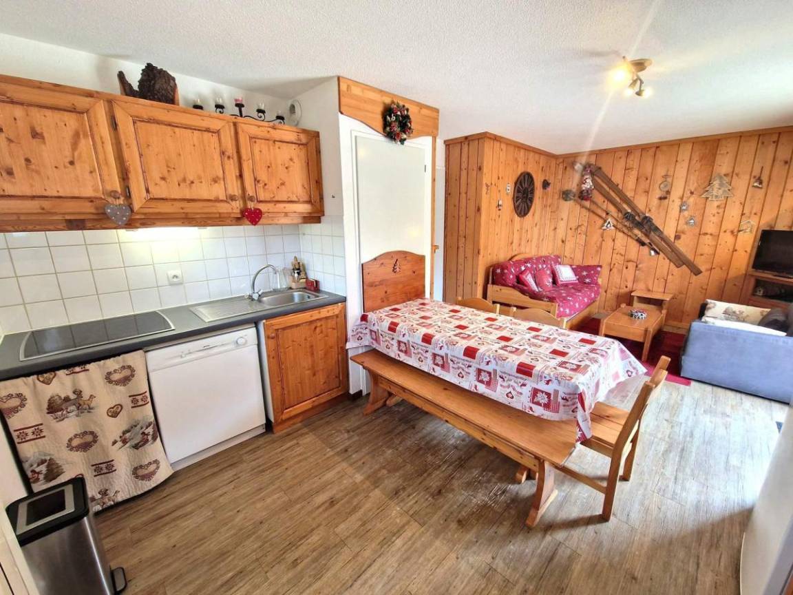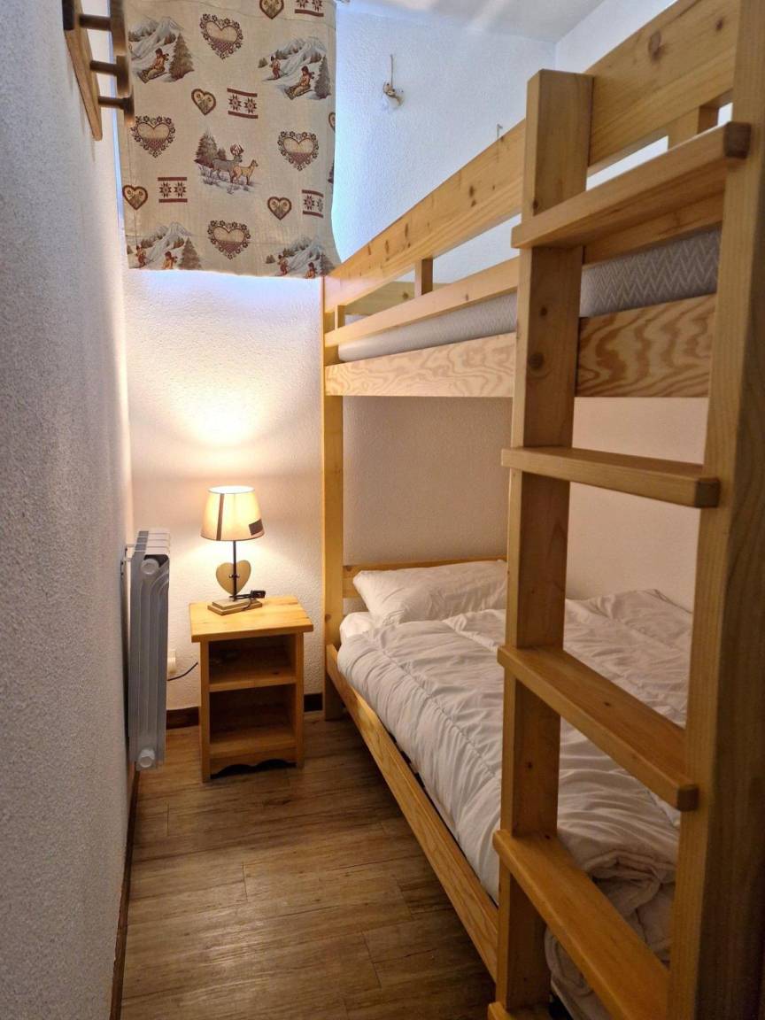 Les Chalets d'Arrondaz, bestehend aus Apartments für 5 bis 8 Personen, bietet einen idealen Rahmen für Ruhe und Entspannung in einem waldreichen Gebiet. Es handelt sich um eine dreistöckige Residenz ohne Aufzug. Genießen Sie Valfréjus, einen Familienort mit Blick auf das Vanoise-Massiv, in vollen Zügen. Geschäfte sind ca. 400 Meter entfernt. Die Apartments befinden sich im Chalets-Viertel, einer ruhigen Umgebung in der Nähe des Minigolfplatzes und 200 Meter vom Ortszentrum entfernt. Ein idealer Ausgangspunkt für Ihre Bergwanderungen... Fläche von ungefähr 36 m². Orientierung : West. Wohnzimmer mit 2 Ausziehbetten, TV. Schlafzimmer mit Doppelbett. offener Schlafbereich mit 2 Stockbetten. Kochnische mit Backofen, Geschirrspülmaschine, Mikrowellenherd, 2 Herdplatten, Kühlschrank. Badezimmer. WC. Terrasse. Die oberen Betten sind nicht für Kinder unter 6 Jahren geeignet.