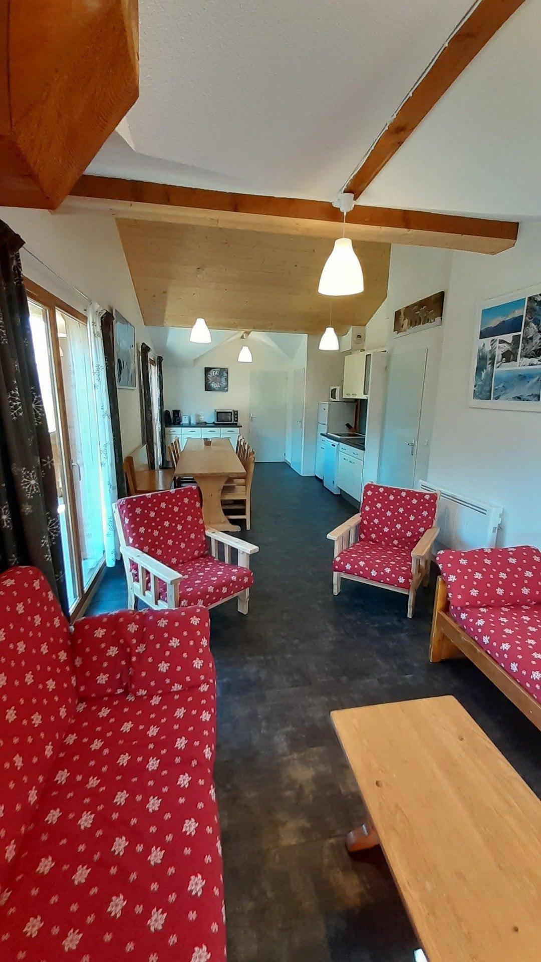 Les Chalets d'Arrondaz, bestehend aus Apartments für 5 bis 8 Personen, bietet einen idealen Rahmen für Ruhe und Entspannung in einem waldreichen Gebiet. Es handelt sich um eine dreistöckige Residenz ohne Aufzug. Genießen Sie Valfréjus, einen Familienort mit Blick auf das Vanoise-Massiv, in vollen Zügen. Geschäfte sind ca. 400 Meter entfernt. Die Apartments befinden sich im Chalets-Viertel, einer ruhigen Umgebung in der Nähe des Minigolfplatzes und 200 Meter vom Ortszentrum entfernt. Ein idealer Ausgangspunkt für Ihre Bergwanderungen... Fläche von ungefähr 90 m². 3te Etage. Orientierung : West. Blick berg (Massif de la Vanoise). Wohnzimmer mit Klappschlafcouch (pour 2 pers), Backofen, Geschirrspülmaschine, Mikrowellenherd, 4 Herdplatten, Kühlschrank, TV. 2 Schlafzimmer mit Doppelbett (160). Schlafzimmer mit 4 Stockbetten. Schlafzimmer mit 2 Einzelbetten (90). Kochnische mit Geschirrspülmaschine, Mikrowellenherd. separates WC. Badezimmer mit WC. 2 Badezimmer. Balkon. Die oberen Betten sind nicht für Kinder unter 6 Jahren geeignet.