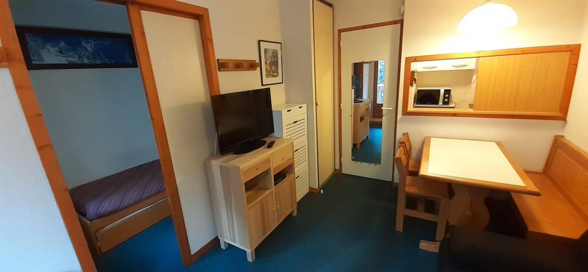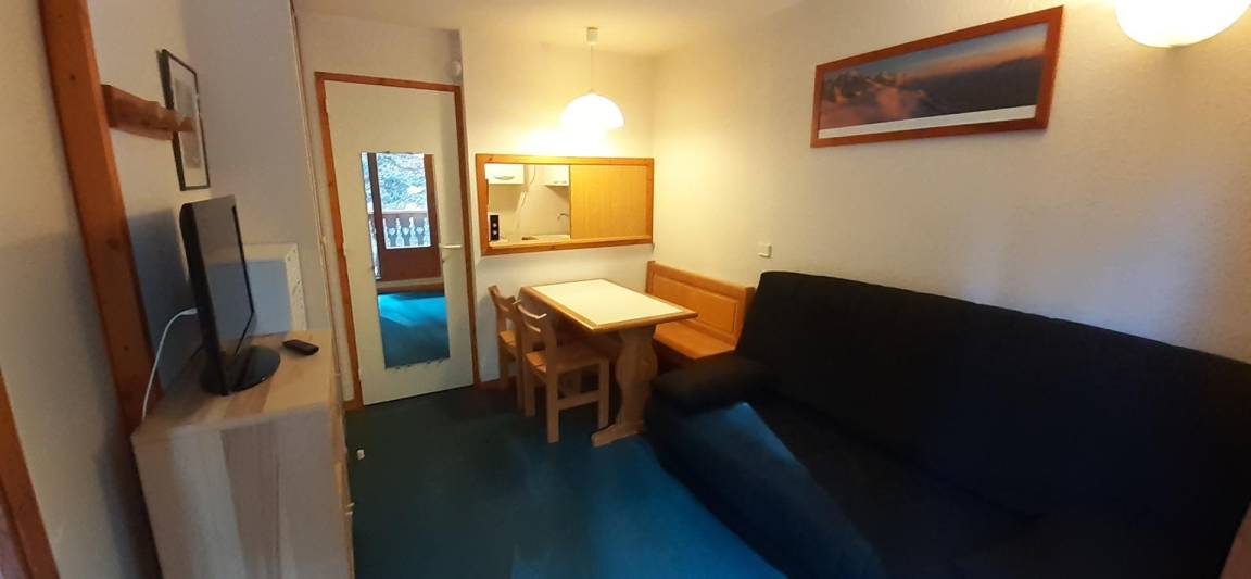 Die Residenz Les Mélèzets 3 befindet sich in idealer Lage im Herzen des Ferienortes Valfréjus. Sie befindet sich in der Nähe von Geschäften, Restaurants und Annehmlichkeiten. Die Arrondaz-Seilbahn und die Wanderwege sind etwa 50 Meter entfernt. Fläche von ungefähr 23 m². 1te Etage. Orientierung : Ost. Wohnzimmer mit Klappschlafcouch, TV. Schlafzimmer mit 2 Ausziehbetten. mit Backofen, Geschirrspülmaschine, Mikrowellenherd, 4 Herdplatten, Kühlschrank. Waschräume. separates WC. Balkon.