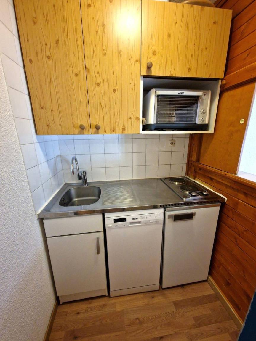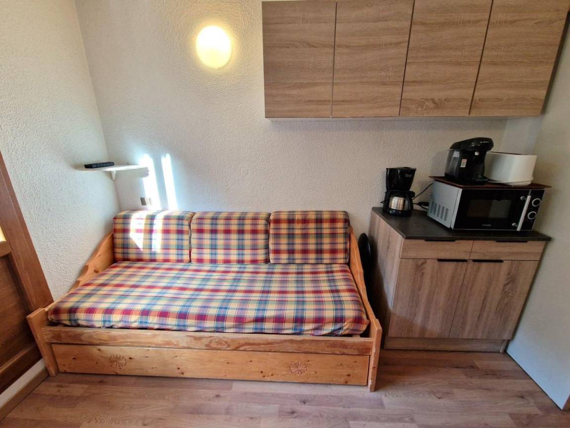 Residenz mit Aufzug. Fläche von ungefähr 19 m². 4te Etage. Orientierung : West. Blick offene und Berg. Diele mit . Wohnzimmer mit Ausziehschlafcouch für 2 Personen (2), TV. mit Backofen, Geschirrspülmaschine, 2 Herdplatten, Kühlschrank. Badezimmer mit WC. Balkon.