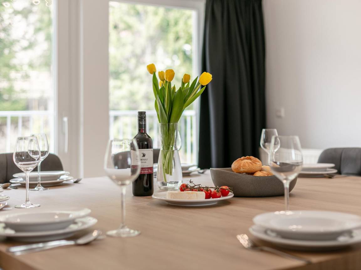 In der 2. Etage: Wohnzimmer mit Doppelschlafcouch, Esstisch , Wohnzimmer mit Schlafcouch 1 Pers., Esstisch , offene Küche mit Kochplatte, Dunstabzugshaube, Kaffeemaschine, Backofen, Geschirrspüler, Kühl-/Gefrierkombination , offene Küche mit Kochplatte, Dunstabzugshaube, Kaffeemaschine, Backofen, Geschirrspüler, Kühl-/Gefrierkombination , Schlafzimmer mit Einzelbett, Doppelbett , Schlafzimmer mit Etagenbett , Schlafzimmer mit Einzelbett, Doppelbett , Schlafzimmer mit Etagenbett , Badezimmer mit Badewanne, Dusche, Waschbecken, Toilette , 3x Badezimmer mit Dusche, Waschbecken, Toilette