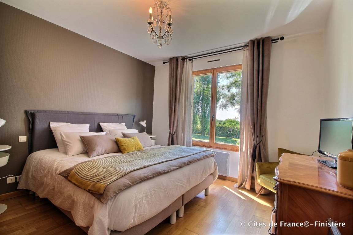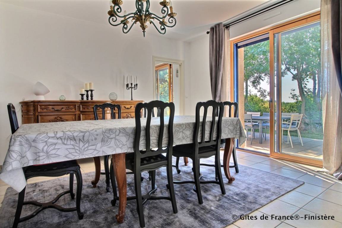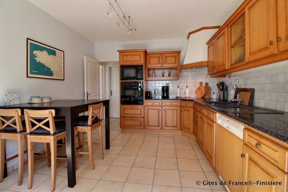 „Vaste maison très bien équipée, idéale pour le repos et les balades sur les sentiers côtiers ou en campagne. Quelques détails mineurs signalés à la conciergerie en charge de cette location, afin de justifier pleinement les 4 étoîles GdF. Au total, un très bon séjour à Kerdoualen !“