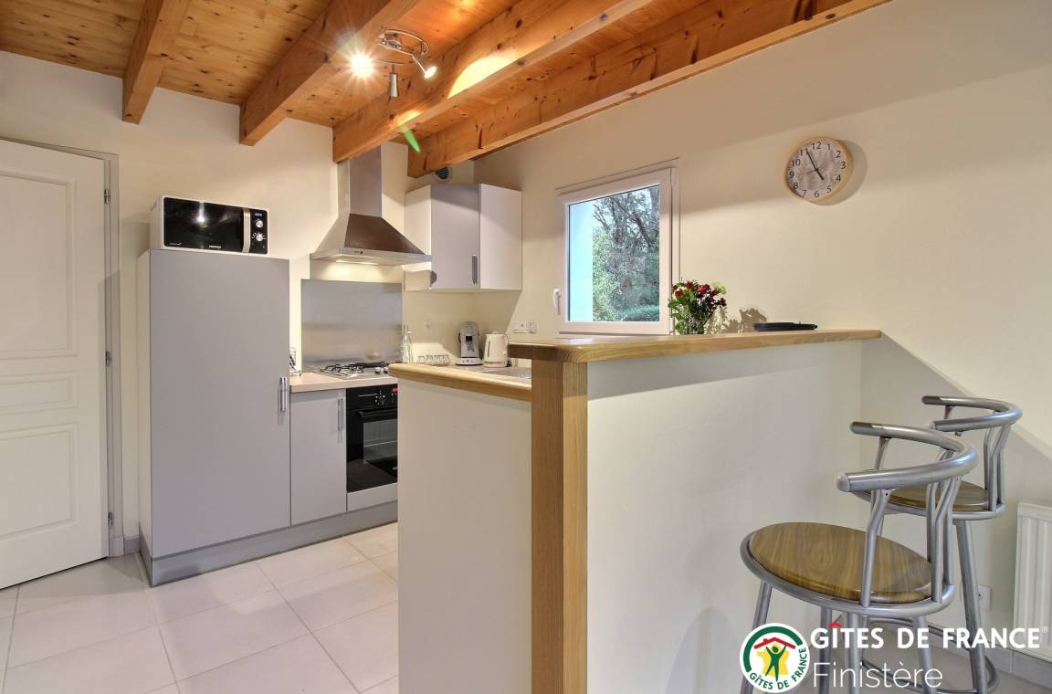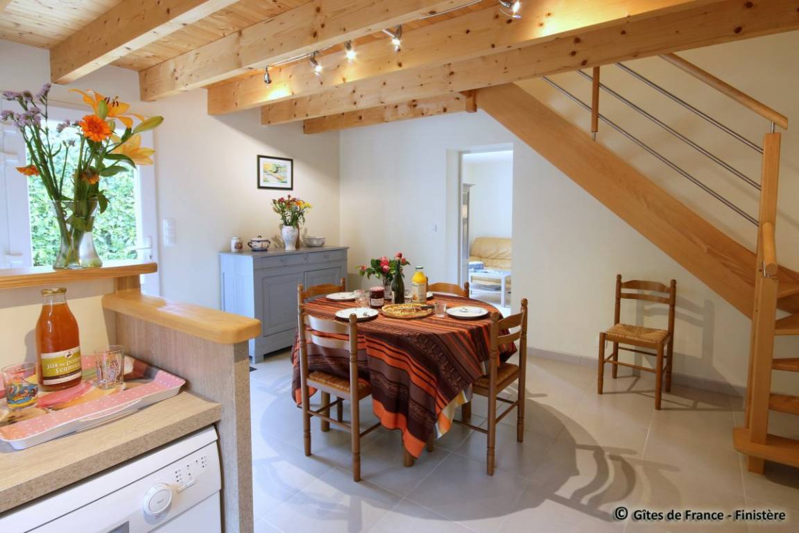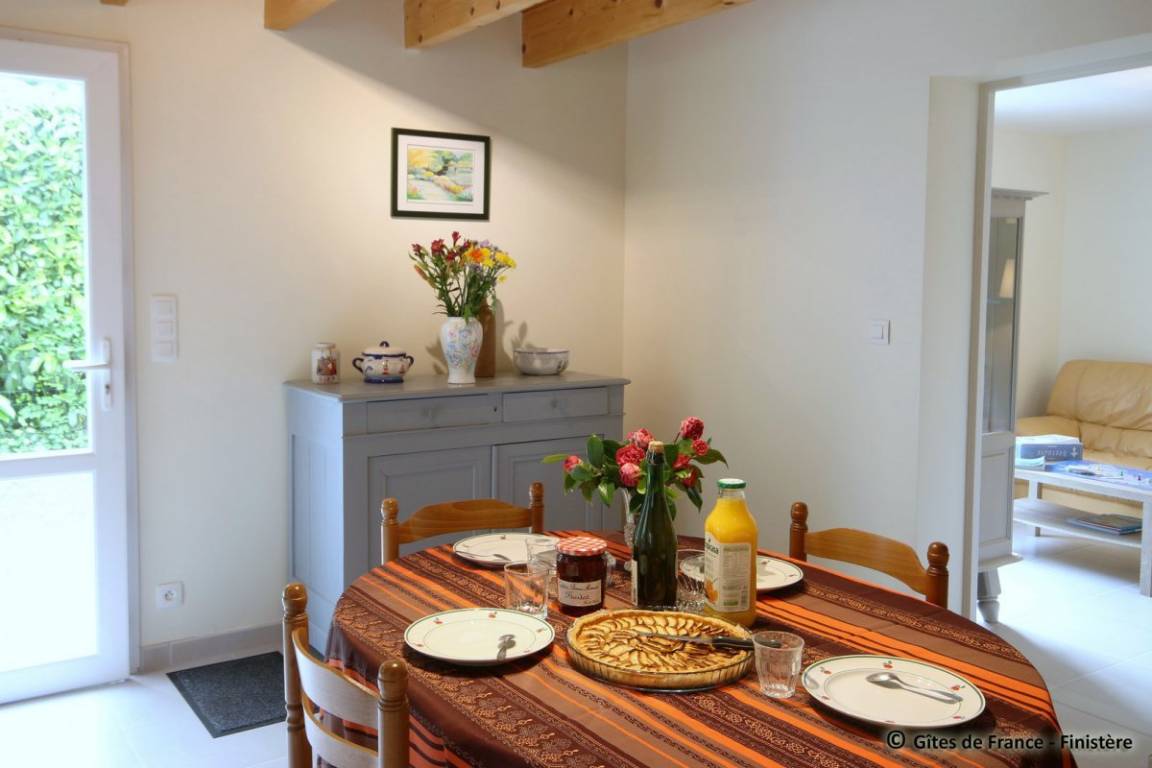 „Ce petit gîte breton est un havre de paix. Excellent accueil de la part de Marcel et Marie-Noëlle. Malgré leur proximité (maison à côté), ce sont des personnes très discrètes mais disponible et de bons conseils. Le gîte est bien situé, au calme, au fond d'une impasse. Il est proche des commerces et des plages. Il est aussi très fonctionnel, très propre, lumineux et très bien conçu. La literie est de bonne qualité. Le petit coin buanderie avec un accès direct à l'extérieur est bien pensé. Il y a un grand frigo dans la cuisine et un congelateur top dans la buanderie. Ce qui permet de ne pas forcément faire les courses au jour le jour. Nous avons passé 15 jours fabuleux, et en plus avec le beau temps ! Pas de pluie durant notre séjour. Nous recommandons vivement ce gîte et reviendrons pour de prochaines vacances en Bretagne.“