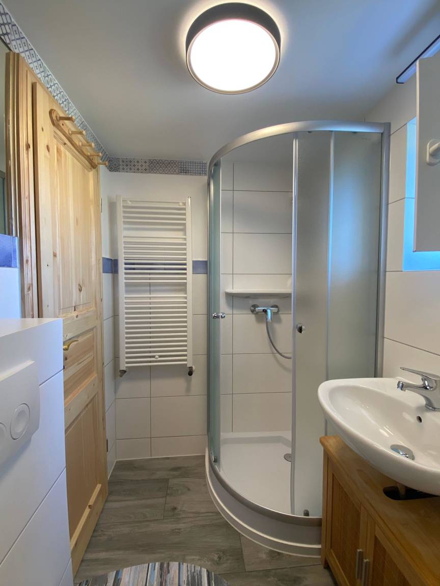 Im Erdgeschoss befinden sich 3 Schlafzimmer und 2 Badezimmer mit Dusche und WC.