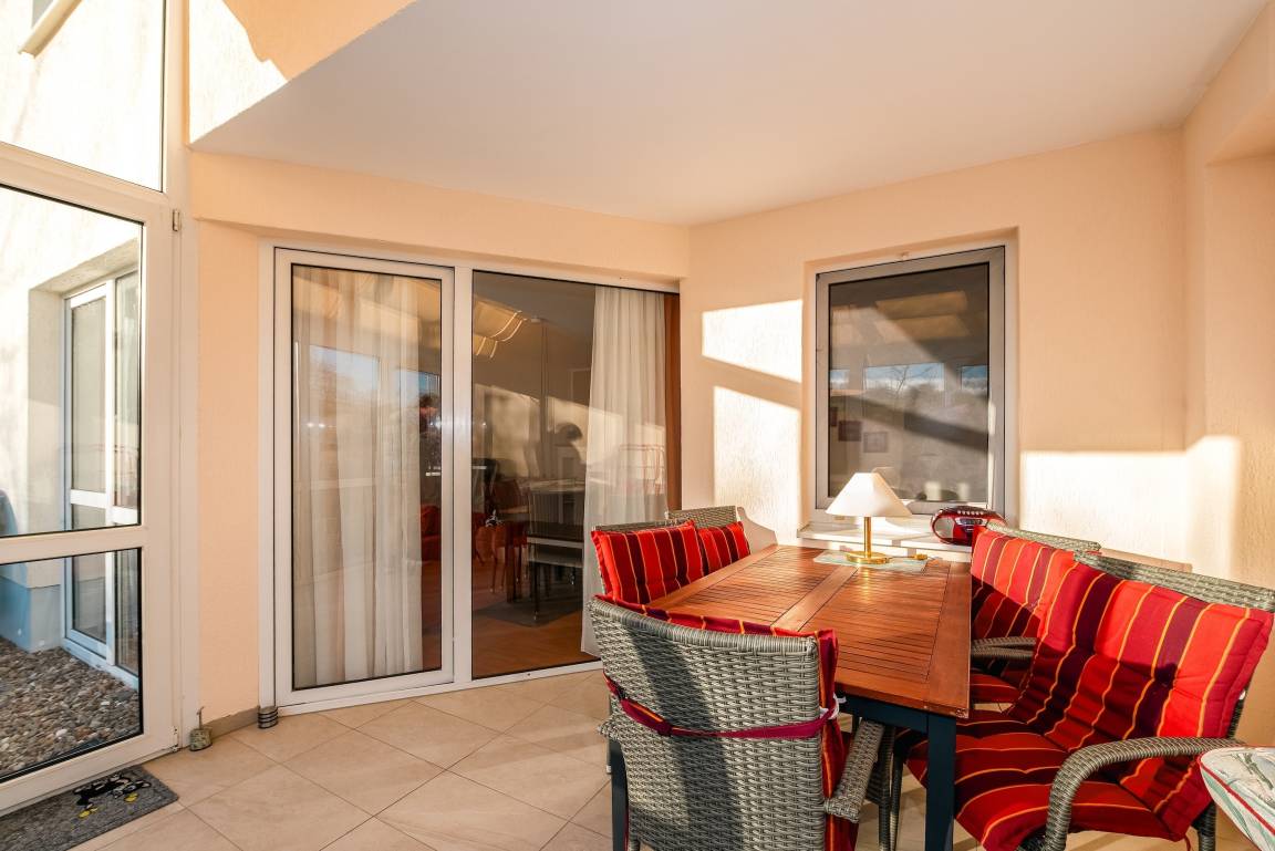 Ein absoluter Hingucker ist der 12m² große Wintergarten der Erdgeschoss-Wohnung; dieser ist vom Wohnbereich aus betretbar und bietet Ihnen dank Süd-Ausrichtung die Möglichkeit, auch zur kälteren Jahreszeit die Rügener Sonne zu genießen!
