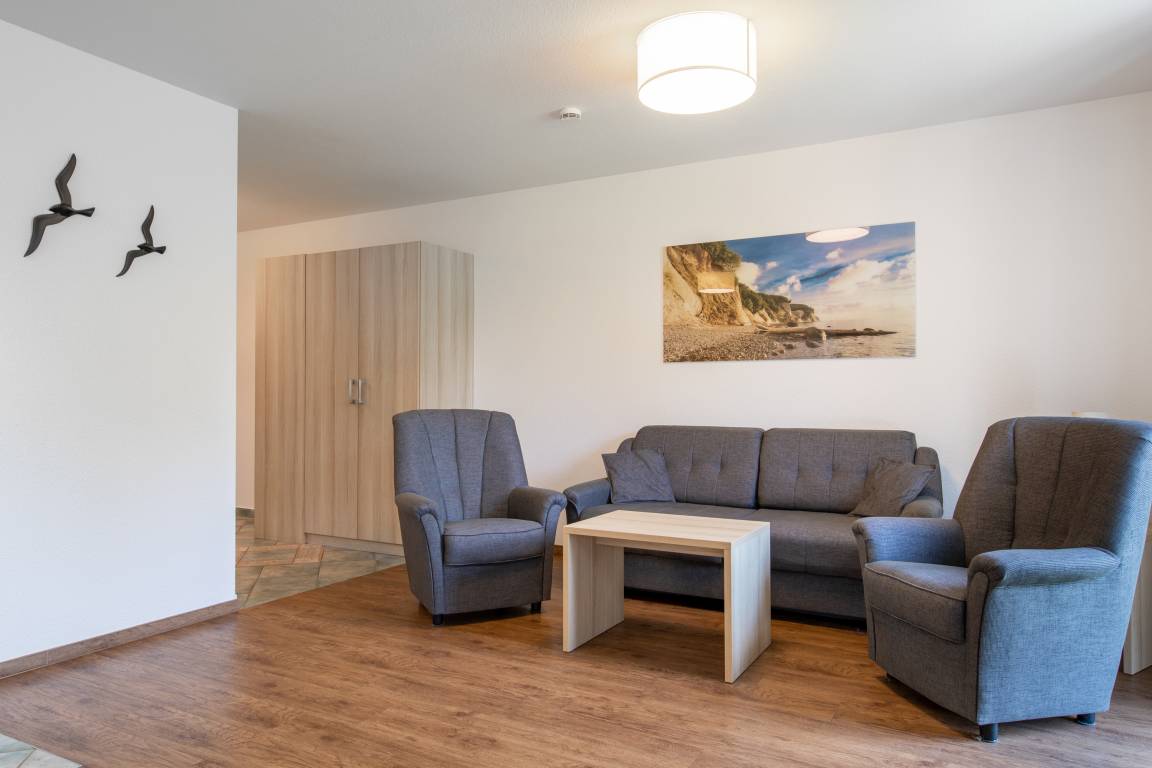 Seit Januar 2025 steht Ihnen die gemütliche Ferienwohnung Nr. 02 im Haus an der Düne Mönchgut/Gager zur Verfügung. In einem wunderschönen mit Reet gedeckten Haus befindet sich dieses gemütliche Domizil nur 50m vom feinsandigen Ostseestrand entfernt. Die Lage der Immobilie lädt Naturliebhaber, sowie Radfahrer besonders ein. Die mondänen Ostseebäder Sellin, Baabe und Göhren sind sowohl mit dem Rad als auch mit dem Auto in wenigen Minuten zu erreichen. Die Ferienwohnung befindet sich im Erdgeschoss des Hauses und verfügt über einen kostenfreien Parkplatz für Ihren PKW. Auf rund 50m² Wohnfläche, finden Sie alles was für einen entspannten Urlaub benötigt wird. Der offen gestaltete Wohn-, Essbereich besticht nicht nur durch modernes Mobiliar und eine voll ausgestattete Küchenzeile, sondern verfügt zusätzlich auch über Zugang zu einer in Südausrichtung gelegenen Terrasse. Neben dem Wohn-, Essbereich befindet sich ein großzügiges Schlafzimmer und ein modernes Bad mit Dusche. Die Ferienwohnung verfügt selbstverständlich auch über alle gängigen und modernen Annehmlichkeiten wie W-Lan, Geschirrspüler und weiteren Küchengeräten.