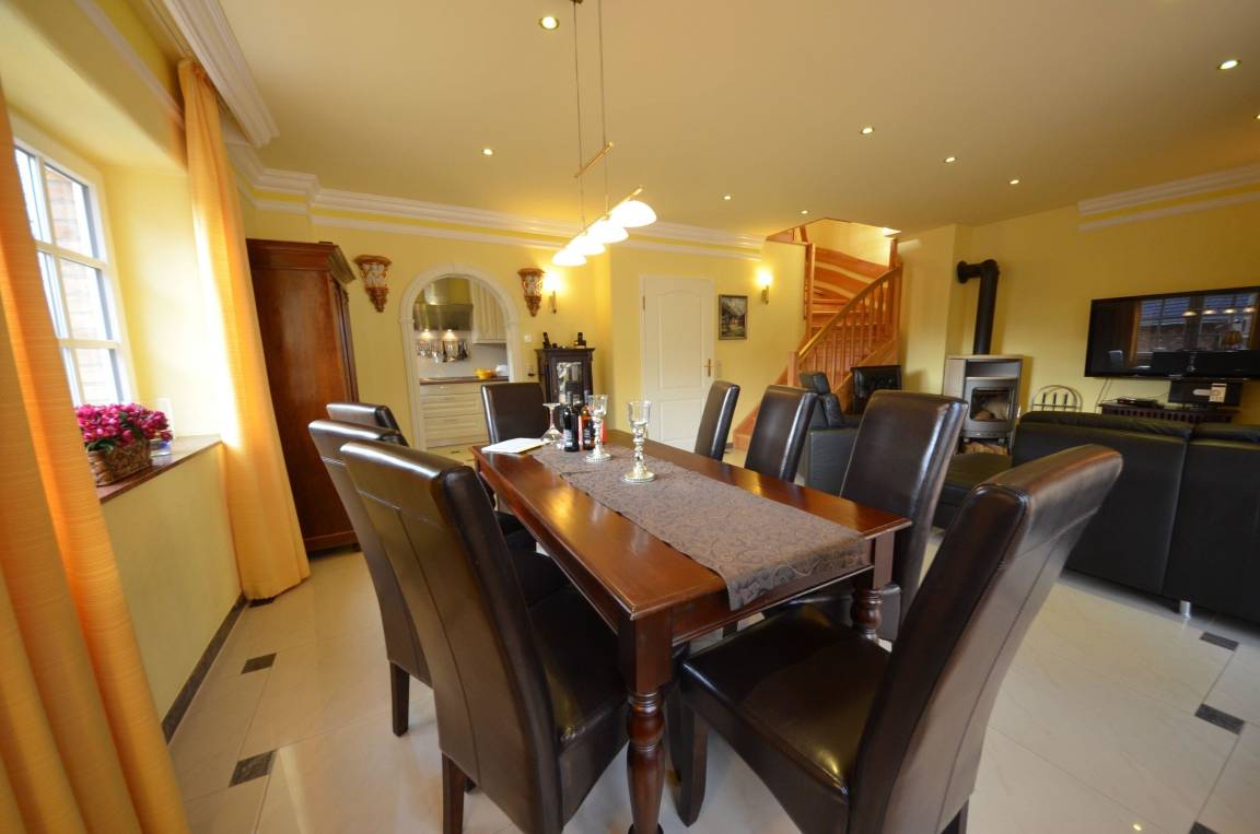 Für 8 Personen, 4 Schlafzi., teils elektr. Rollläden, 4 Granitbäder, große Sauna, Fußbodenheizung 50m² Terrasse, Ledercouch, Hark-Kaminofen, Holz kostenlos ,