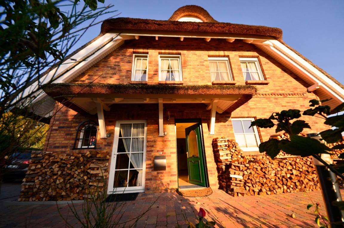 Die Reet-Dacheindeckung sowie die Sprossenfenster vermitteln eine gemütliche Atmosphäre und passen zum allgemeinen Charakter des Dorfes.