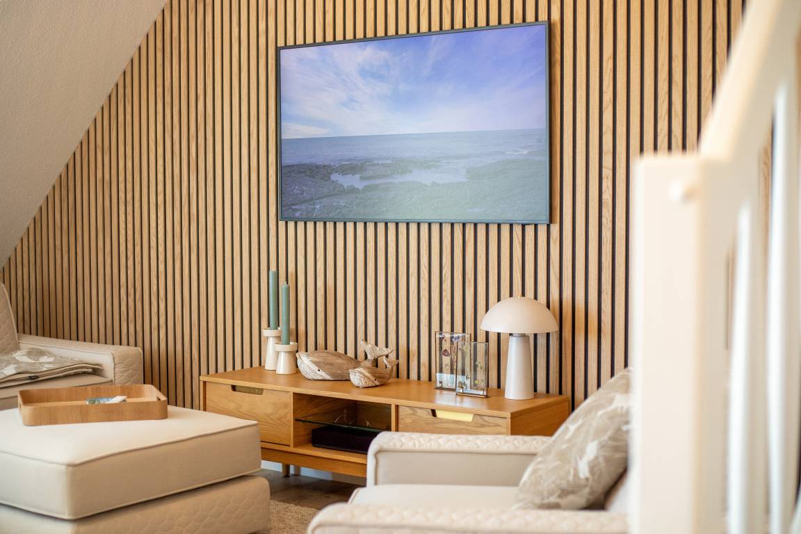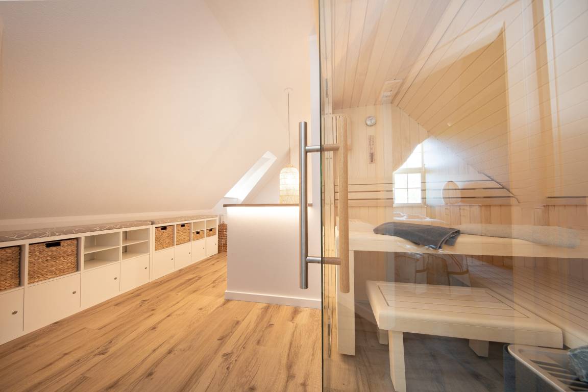Wir freuen uns, Ihnen diese wundervolle Ferienwohnung im Haus an der Düne präsentieren zu dürfen. Die rund 90m² große Ferienwohnung ersteckt sich über 2 Etagen und wurde zum Sommer 2025 umfassend renoviert und neu eingerichtet. Mit viel Liebe zum Detail, haben die Eigentümer der Wohnung, ein traumhaftes Domizil erschaffen. Neben den beiden Elternschlafzimmern steht ein zusätzlich Kinderschlafzimmer mit Etagenbett zur Verfügung. Ein Traum für die kleinsten der Familie. Der an den offenen Wohn,- Essbereich angrenzende Balkon ist Richtung Süden ausgerichtet und lässt sich so prima zum Sonnenbaden nutzen. Die Möglichkeit 2 PKW abzustellen rundet den Konfort der Wohnung ab. Als besonderes Highlight gibt es eine private und sehr moderne Sauna im OG der Wohnung. Hier lässt es sich aushalten... Die direkte Strandlage, die Nähe zu Restaurants und den berühmten Bäderorten Sellin, Baabe und Göhren lassen diese Wohnung im Herzen des Ostseebad Mönchgut zu einem perfekten Ausgangspunkt für Wanderungen, Strandbesuche und verschiedenste Unternehmungen werden. Herzlich Willkommen in Ihrem nächsten Urlaubsdomizil.