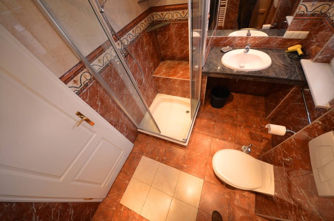 mit 2 großen Fenstern, Dusche in der Wanne mit Dusch - Trennwand. Fön, Schminkspiegel, Fußbodenheizung, Granit-Natursteinabdeckungen, großflächige Spiegel, schöne Sanitärausstattung in Pargamon, beheizbarer Handtuchhalter.