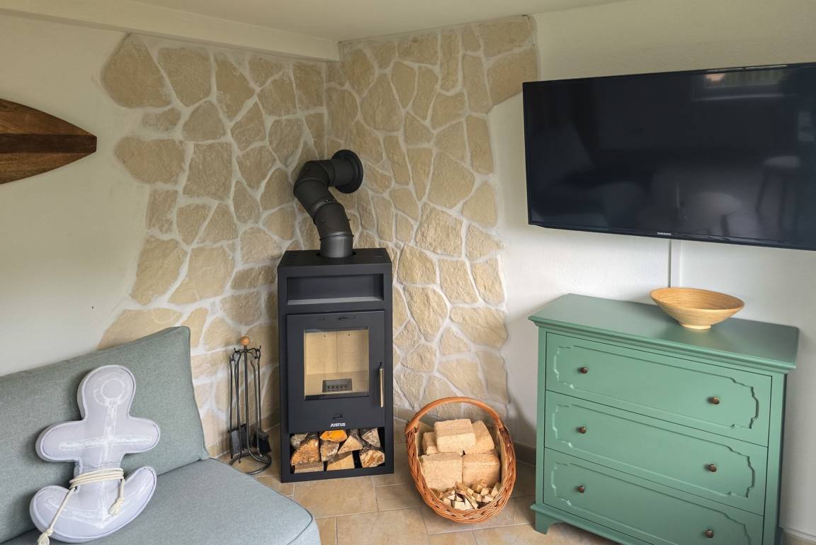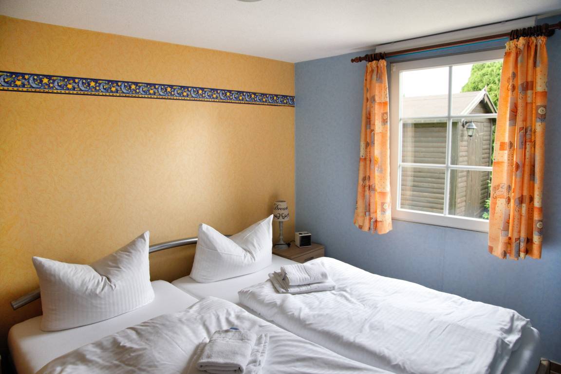 Das Schlafzimmer beinhaltet ein Doppelbett, Nachttische, Leselampen und ein Kleiderschrank. Das idyllische Kaminzimmer, bietet neben einer gemütlichen Atmosphäre auch einen eigenen Fernseher und flexible Nutzungsmöglichkeiten. Denn es kann zu einem weiteren Schlafzimmer umgestaltet werden. Alle Räume sind mit Fliegen-gittern ausgestattet, um Ihnen eine ungestörte Nachtruhe zu ermöglichen. Zudem lässt sich in jedem Raum eine Verdunklung realisieren. Für unsere kleinen Gäste stehen kostenfrei ein Babybett und ein Kinderhochstuhl zur Verfügung.